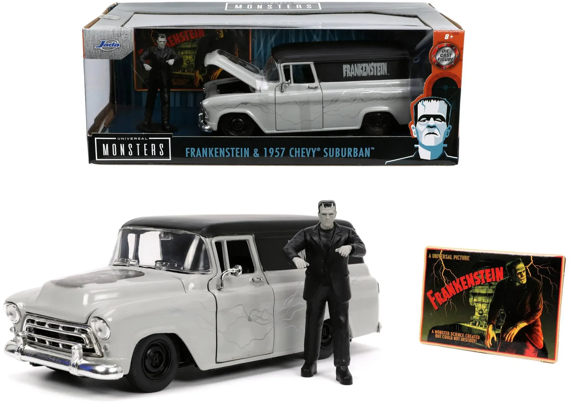 Verfügbarkeit: Auf Lager - Kategorie: Modellfahrzeuge - Jada - GTIN:4006333075988 - Freilauf, Die-cast, Türen, Kofferraum + Motorhaube zum öffnen, Die-cast Frankenstein Figur, WB, grau, Hersteller: Jada - 36,95 Euro bei Amazon Marketplace Toys - gefunden von billiger.de ![]() ![]() Jada 1/24 - Universal Monster eBay 1957 Chevy Suburban Mit Frankenstein Figur 32191