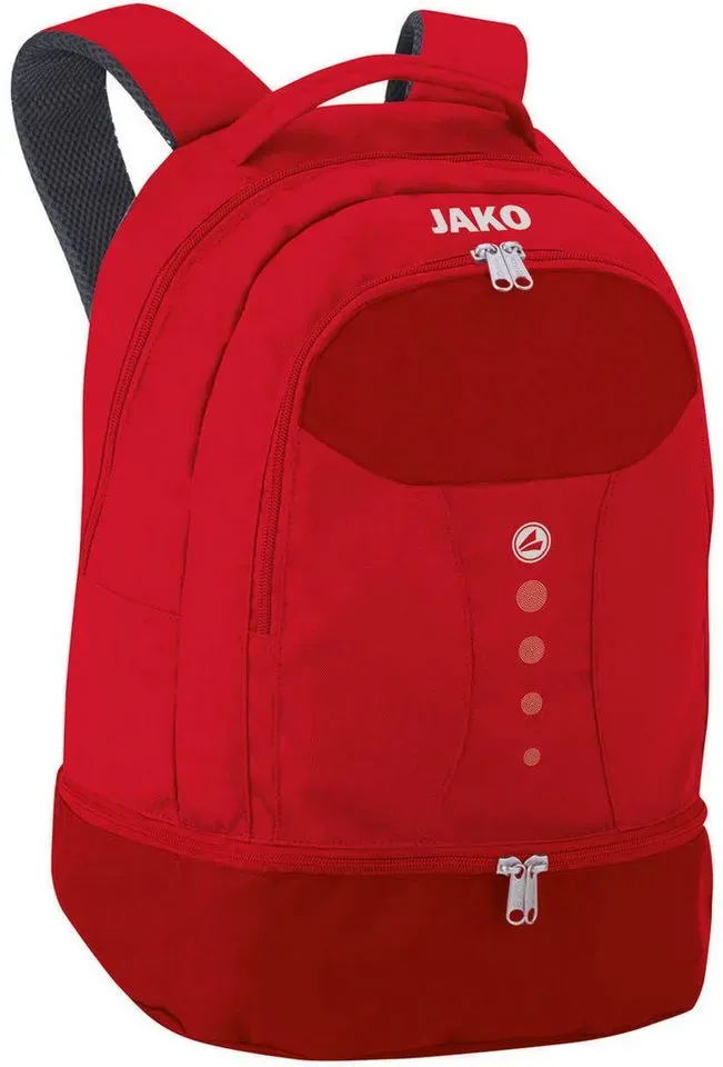 Zustand: Neu - Klassische Sporttaschen - JAKO - - EAN: 4056856653392 - Großes Hauptfach mit 2-Wege-Reißverschluss Kleine separate Reißverschlusstasche auf der Vorderseite Gepolsterter, abgesteppter Rücken sowie gepolsterte Tragegurte Kleine Innentasche mit Reißverschluss, Separates Bodenfach, Tiefes Nassfach, Seitliche Einschubtaschen aus Mesh 100 % Polyester - 3 Händler im amazon.de Marketplace Ein solides Angebot von Kaufland.de zu einem fairen Preis für den roten Striker Rucksack. ![]() ![]() Rucksack Striker JAKO - Rot