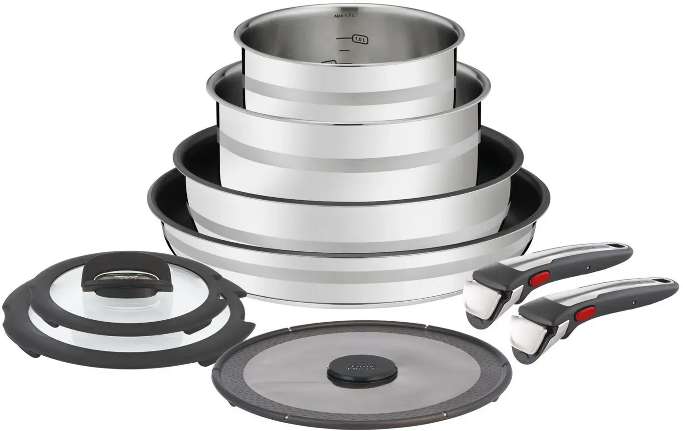 ![]() ![]() Tefal Pfannen-Set Jamie Oliver Ingenio Induktions Töpfe Set, Pfannenset, Edelstahl (Set, 9-tlg., Bratpfanne 28 cm, Kasserollen 16/20 cm, Schmorpfanne 24 cm, 3 Deckel), für alle Herdarten geeignet, Thermo-Signal, Antihaft, L9769932 silberfarben