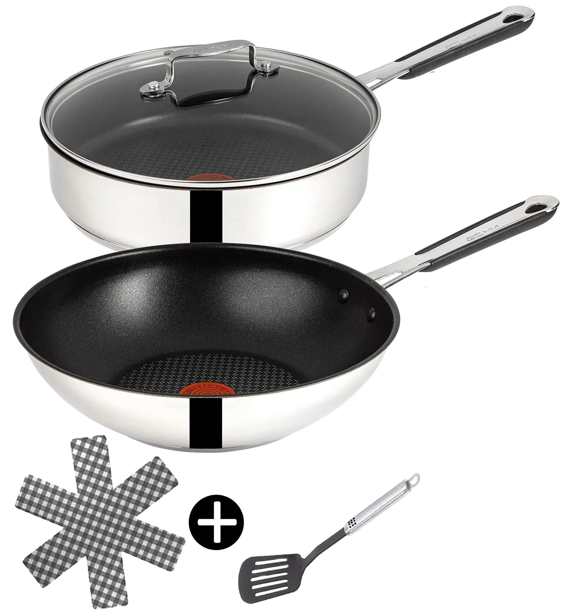 Kategorie: Pfannen - Tefal - GTIN:3168430362437 - Mit dem 2-teiligen Pfannenset JAMIE OLIVER von TEFAL in Schwarz kochen Sie wie ein Profi! Das Set besteht aus zwei hochwertigen Pfannen. Die Antihaftbeschichtung sorgt dafür, dass nichts anbrennt und die Reinigung zum Kinderspiel wird. Erhältlich in zwei praktischen Größen mit einem Durchmesser von ca. 20 cm und 26 cm sind diese Pfannen die perfekte Wahl für jeden Kochmoment. - 25,00 Euro bei mömax - gefunden von billiger.de Dieses 2-teilige Set bietet mit 20 cm und 26 cm Pfannen eine gute Grundausstattung für kleine Haushalte zu einem attraktiven Preis. ![]() ![]() Tefal E30 Jamie Oliver Pfannenset Induktion 2 tlg -SET22- kleine Pfanne 20 cm + Bratpfanne 26 cm, Antihaft-beschichtet, FüR KLEINE HAUSHALTE, ohne Glasdeckel