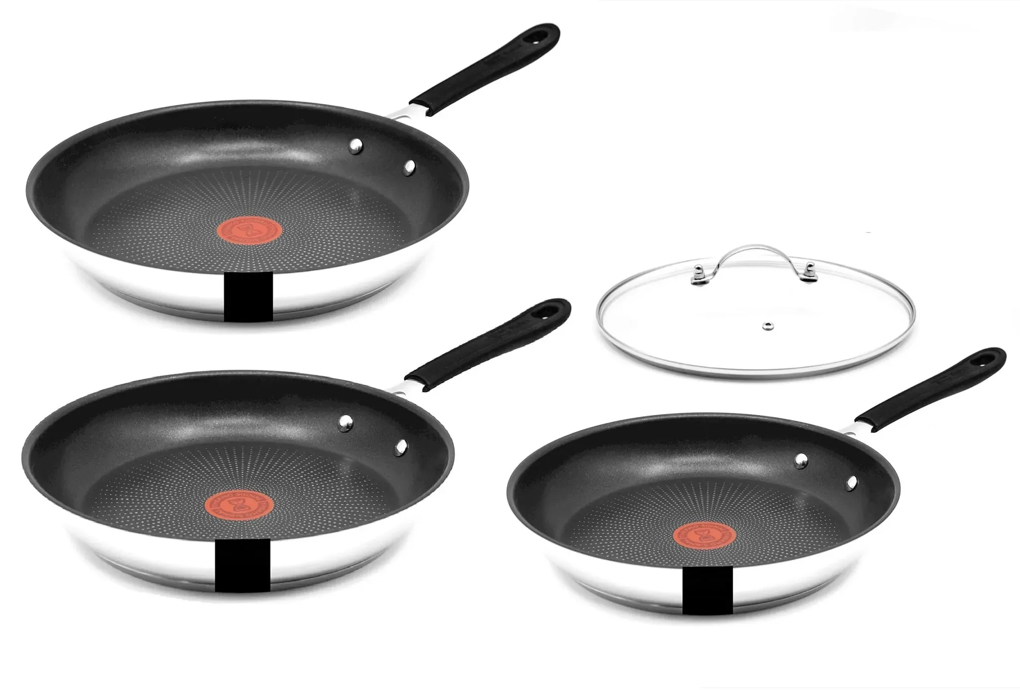 Zustand: Gebraucht - Brat- & Universalpfannen - Tefal Tefal by Jamie Oliver - E304S344 - EAN: 3168430310919 - OFENFEST: Für noch mehr Vielseitigkeit beim Kochen können diese Pfannen bei bis zu 210 °C im Backofen verwendet werden TEMPERATURINDIKATOR: Die Thermo-Signal-Technologie von Tefal zeigt an, wann die Pfanne die ideale Brattemperatur erreicht hat - für rt perfekte Ergebnisse bei Konsistenz, Farbe und Geschmack ANTIHAFVERSIEGELUNG: Die leicht zu reinigende Pfannenbeschichtung ist mit Titanium-Partikeln verstärkt, die für eine hohe Langlebigkeit und leichte Reinigung sorgen - 14 Händler im amazon.de Marketplace Dieses 4-teilige Set mit 24 cm und 28 cm Pfannen bietet eine gute Größe für Familien und ist antihaftbeschichtet sowie kratzfest. ![]() ![]() Tefal E30 Jamie Oliver Pfannenset Induktion 4 tlg -SET9- Edelstahl Pfanne 28 cm groß + Pfanne 24 cm, Bratpfannen hoch, Antihaft-beschichtet, hohe Gleitfähigkeit + Kratzfest