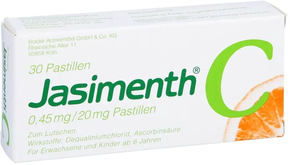 EAN: 4150137118898 - JASIMENTH C Lutschpastillen 30 St. von Bolder Arzneimittel GmbH & Co. KG (PZN 13711889) günstig kaufen bei Fliegende-Pillen.de - seit über 1 n Ihre Versandapotheke. Günstig, diskret, sicher. - bei fliegende-pillen.de - aus Yadore Produktdaten ![]() ![]() Bolder Arzneimittel GmbH & Co. KG Jasimenth C