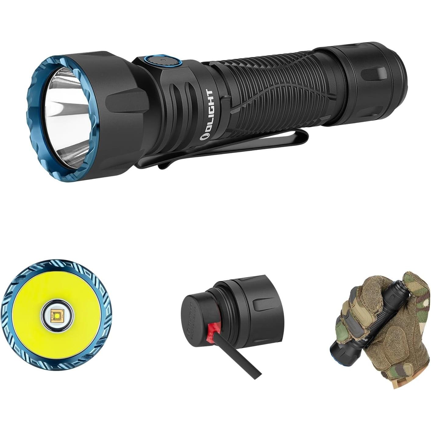 Auf Lager Versand durch AmazonOLIGHT Javelot LED Taschenlampe 134,000 Candela, 730 Meter Leuchtweite Taktische Lampe aufladbar bis 72 Tage Laufzeit mit 6 Modi helle Licht, 197 g kleine Handlampe für Outdoor Schwarz