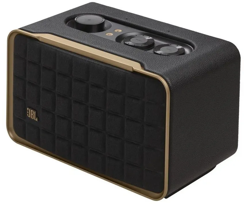 Auf Lager Versand durch AmazonJBL Authentics 200 Smart Home Lautsprecher ? 70er Jahre Retro-Design Bluetooth Box ? Mit Quadrex Grill, Google Assistant, Alexa, AirPlay und JBL One App ? Schwarz