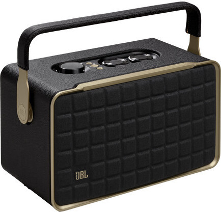 Auf Lager Versand durch AmazonJBL Authentics 300 Tragbarer Smart Home Lautsprecher ? 70er Jahre Retro-Design Bluetooth Box ? Mit Google Assistant, Alexa, AirPlay und JBL One App ? Schwarz