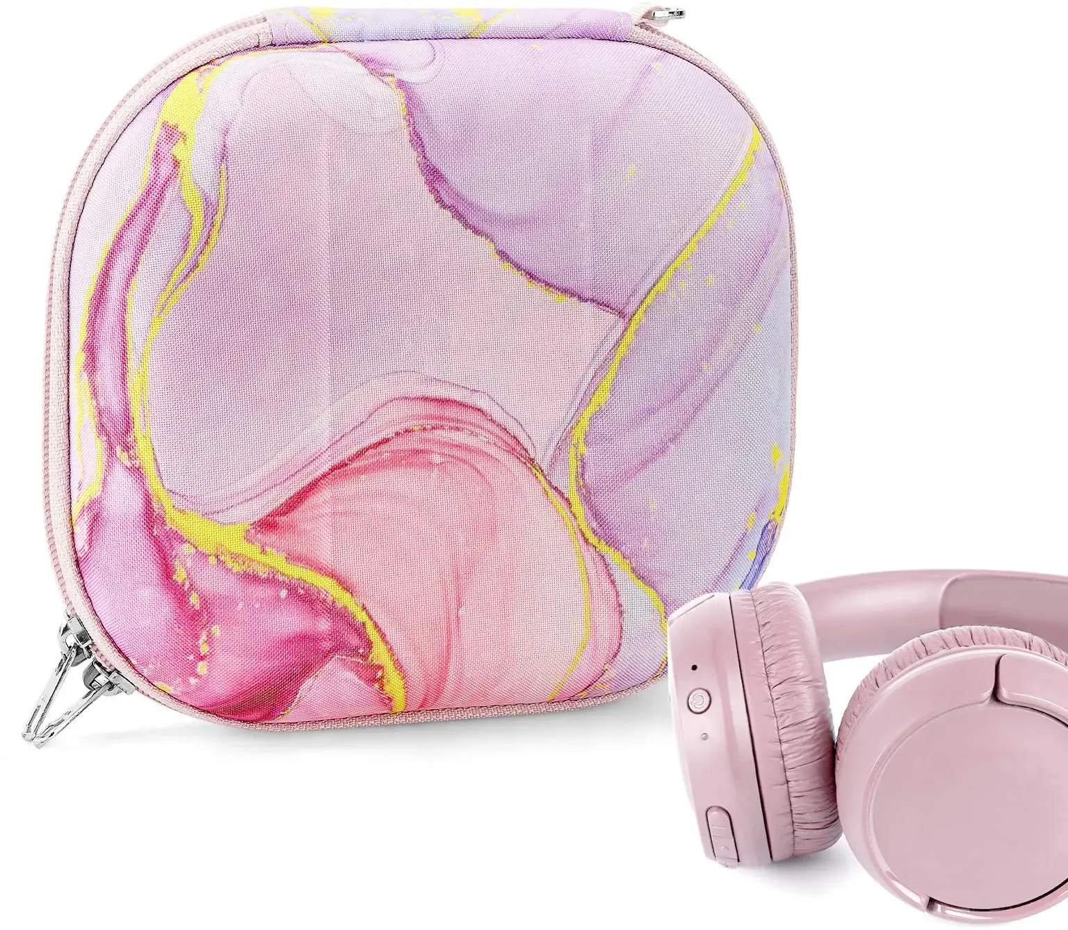 Auf Lager Versand durch AmazonGeekria NOVA On-Ear-Kopfhörer-Hülle, kompatibel mit JBL Tune 510BT, 570BT, 520BT, 670NC, 560BT, Ersatz-Hartschalen-Reisetragetasche mit Kabelaufbewahrung (Pink Marble)
