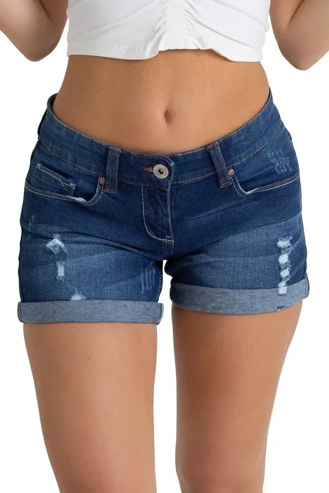 lieferbar-in 4-5 Werktagen bei dirBlauerHafen Jeansbermudas Damen Jeans Shorts Destroyed Bermuda Stretch Boyfriend Hotpants blau 44 (Taille: 91-93cm)