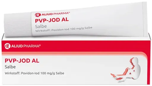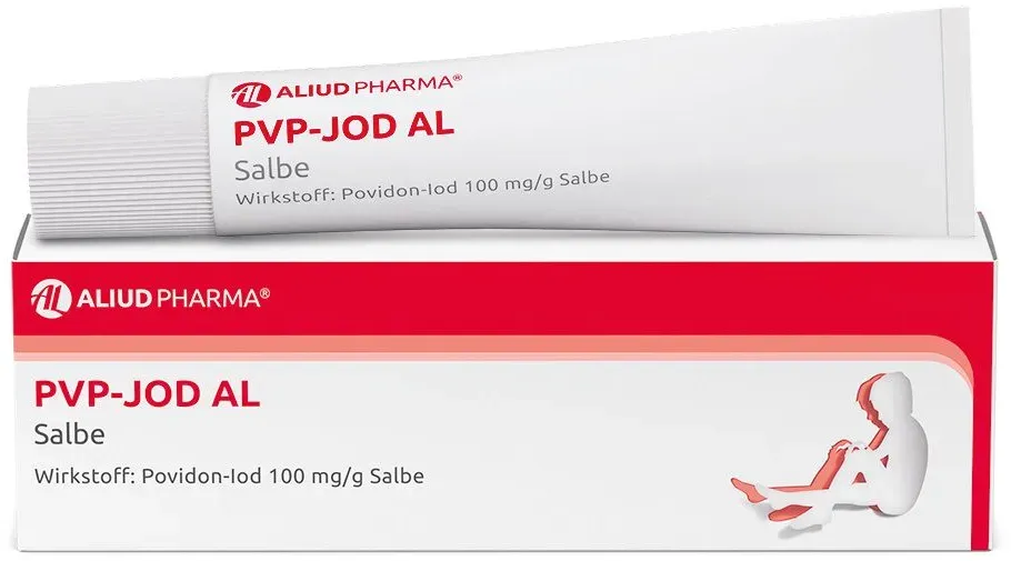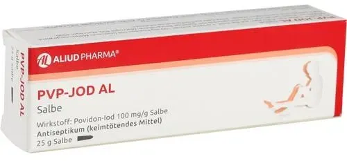 EAN: 4150072604258 - PVP-Jod -ratiopharm Salbe Wirkstoff: Polyvidon-Jod Anwendungsgebiete: Zur wiederholten, zeitlich begrenzten oberflächlichen Anwendung bei Schnitt- und Schürfwunden, Verbrennungen und Verbrühungen, infizierten und superinfizierten Hauterkrankungen, Druck- und Unterschenkelgeschwüren (Decubitus, Ulcus cruris). - bei ipill.de - aus Yadore Produktdaten Für 4,24 Euro erhalten Sie hier eine 25g PVP-Jod AL Salbe, die eine gute Balance zwischen Preis und Qualität bietet. ![]() PVP-Jod AL Salbe bei Wunddesinfektion (Antiseptikum)