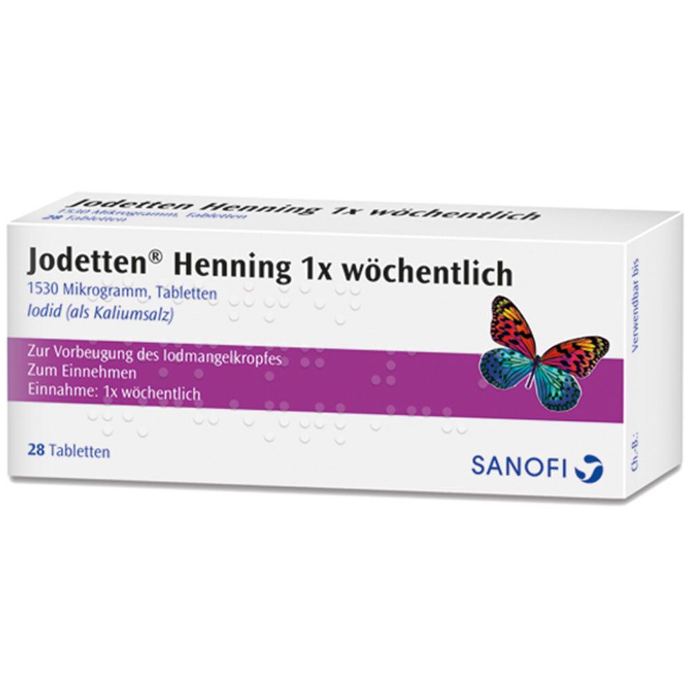 Sanofi-Aventis - Jodetten Henning 1x wöchentlich Tabletten, 28 St - bei claras-apotheke.de - aus Yadore Produktdaten ![]() ![]() JODETTEN 150 Henning Tabletten 100 St