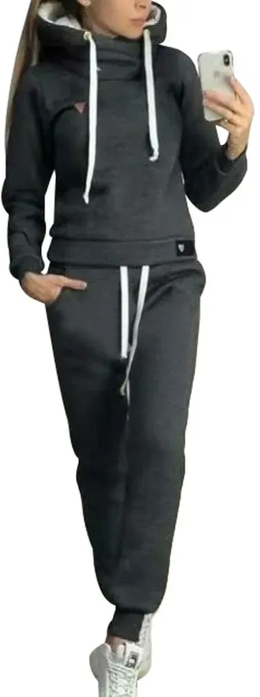 Auf Lager Versand durch AmazonYuson Girl Damen Jogginganzug Fleece Hausanzug Zweiteiler Outfit, 2 Teilig Jogger Trainingsanzug mit Hoodie und Jogginghose, Baumwolle Freizeitanzug Tracksuit Warm Sportkleidung Set(Dunkelgrau, M)