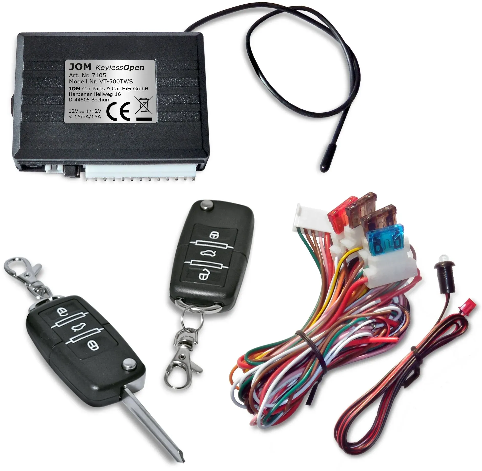 Zustand: Neu - Zentralverriegelungen - JOM Car Parts & Car Hifi GmbH - 7105 - EAN: 4048961018401 - Universal Upgrade auf Funkfernbedienung, für Fahrzeuge mit vorhandener Original-ZV ob elektrisch, plus oder minus gesteuert, pneumatisch oder Fahrertür Stellmotor (nicht im Lieferumfang) 2x Klappschlüssel mit Platz für Transponder, Batterie Handsender: 2x CR2016, 3V Anschluss für Komfort-Schließung negativ oder positiv, Minisirene (nicht im Lieferumfang), und für Kofferraumöffnung optische Bestätigung durch die Blinker, problemloses Anlernen weiterer Handsender - Verkäufer: JOM Car Parts & Car Hifi GmbH im amazon.de Marketplace Dieses Angebot ist empfehlenswert, da es eine JOM Keyless Open Funkfernbedienung für die Zentralverriegelung zu einem attraktiven Preis bietet. ![]() ![]() JOM Keyless Open Funkfernbedienung für ZV 7105-1]
