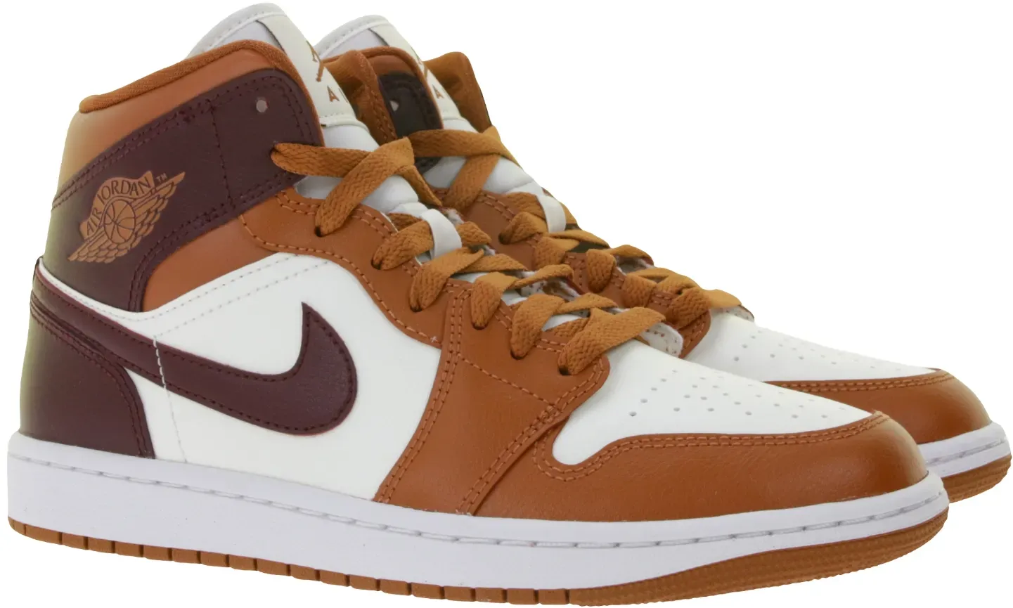 3 Händlerangebote bei billiger.de - Kategorie: Sneaker - Jordan - NIKE Air Jordan 1 Mid Damen Sneaker Echtleder Turnschuhe Mid-Top Sneaker BQ6472-200 Weiß/Rot/Braun Der Nike Jordan 1 Mid Air WMNS ist ein legendärer Sneaker, der das klassische Design von 1985 originalgetreu aufgreift und es mit modernen Farbakzenten neu interpretiert Er ist speziell für Damen konzipiert und bietet eine Kombination aus hochwertigem Leder und synthetischen Materialien, die für Strapazierfähigkeit und Komfort sorgen Die perforierten Zehenpartien gewährleisten eine verbesserte Belüftung, während flache Schnürsenkel für eine sichere Passform sorgen Der gepolsterte Kragen sorgt für zusätzlichen Halt und ein auffälliges Design-Highlight Für exzellenten Tragekomfort verfügt der Schuh über eine Zwischensohle mit einem integrierten Air-Sole-Dämpfungselement, das federnden Komfort bietet Die robuste Gummi-Außensohle mit dem klassischen AJ1-Traktionsmuster rt sicheren Halt auf unterschiedlichen Oberflächen Das seitliche Air Jordan Wings Logo sowie der Jumpman-Branding auf der Zunge runden den ikonischen Look ab Perforationen für Belüftung Air-Sole-Dämpfung Gepolsterter Kragen Außensohle: Gummi Innenmaterial. Textil Gewicht je Schuh: ca. 400g bei Größe EUR 39 - GTIN:0196975654222 Ein sehr günstiges Angebot für Damen-Sneaker in einer attraktiven Farbkombination. ![]() ![]() NIKE Air Jordan 1 Mid Damen Sneaker Echtleder Turnschuhe Mid-Top Sneaker BQ6472-200 Weiß/Rot/Braun - 37 1/2
