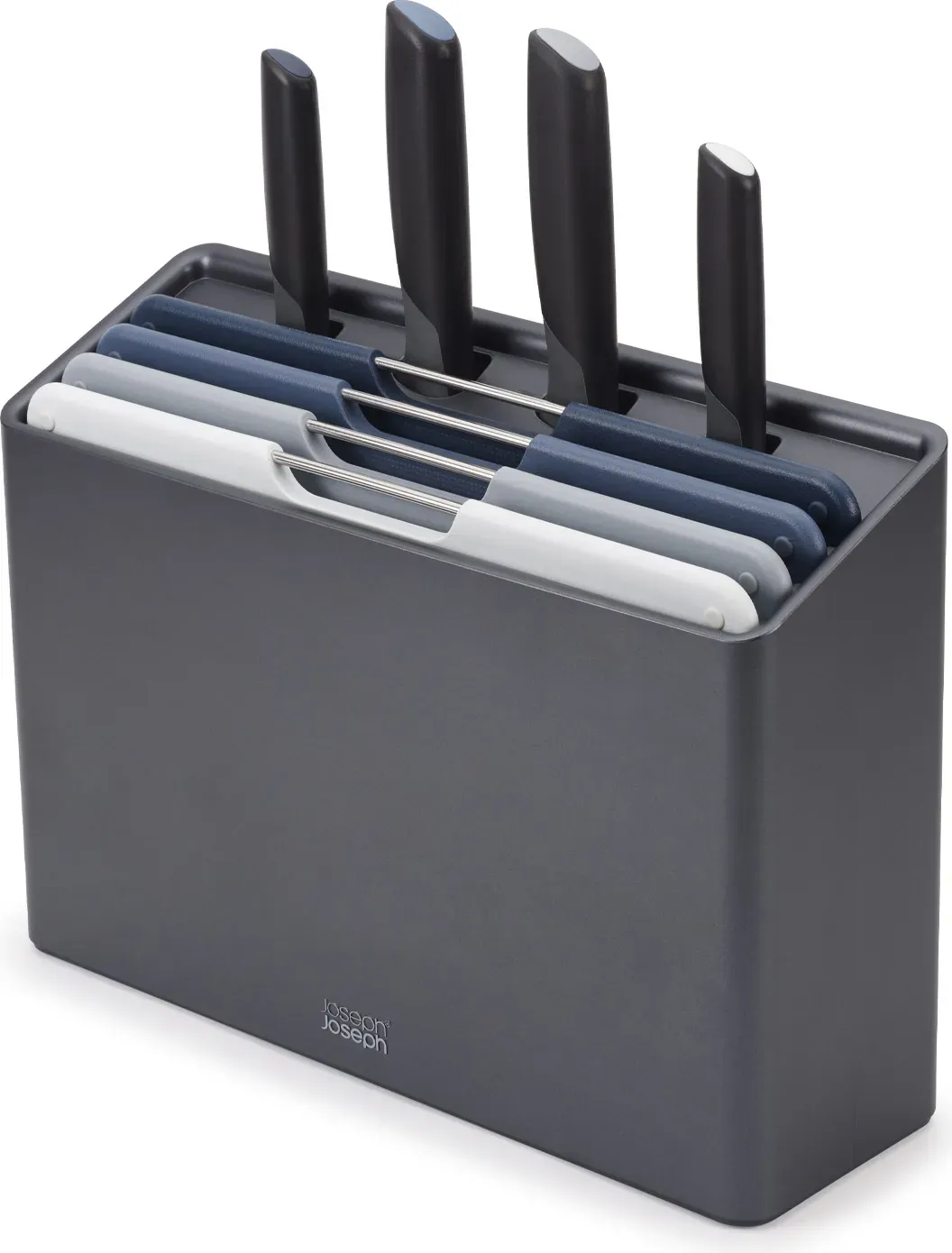Kategorie: Schneidebretter - Joseph Joseph - GTIN:5028420008425 - Material , Bambus, Edelstahl, Kunststoff, Materialeigenschaften , rutschfest, Holzart , Bambus, Breite , 8,5 cm, Länge , 38 cm, Höhe , 28,7 cm, Gewicht , 4200 g, Ausstattung , Silikonfüße, Farbe , Edelstahlfarben, Pflegehinweise , mit feuchtem Tuch abwischbar, Lieferumfang , 3x bamboo chopping boards; 1x stainless-steel case, - 104,46 Euro bei OTTO - gefunden von billiger.de Ein Premium-Set mit Schneidebrettern und Messern, das höchste Ansprüche an Funktionalität und Design erfüllt. ![]() ![]() Joseph Joseph Folio Plus Schneidebretter mit Messern blau 9 El.