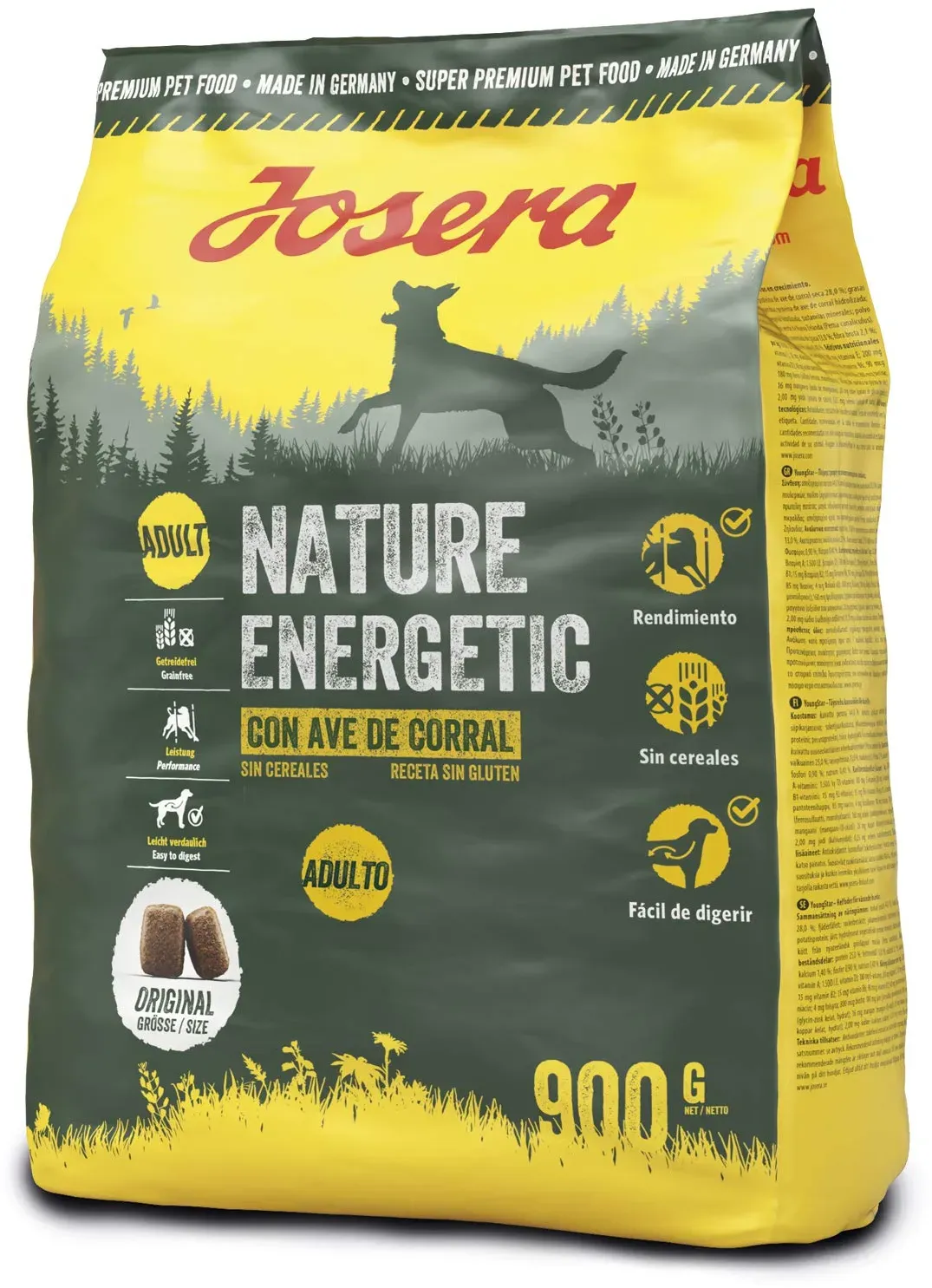 14 Händlerangebote bei billiger.de - Kategorie: Hundefutter - Josera - Rezeptur ohne Getreide und ohne Kartoffeln JOSERA Nature Energetic zeichnet sich nicht nur durch seine gute Verdaulichkeit aus, sondern auch durch die getreidefreie Rezeptur ganz ohne Kartoffeln. Für die aktiven Naturliebhaber liefert unser Hundefutter JOSERA Nature Energetic ein Plus an Energie. In der getreidefreien Rezeptur wurde auch auf Kartoffel verzichtet. Getreidefrei Diese Rezeptur enthält kein Getreide und eignet sich zur täglichen getreidefreien Ernährung gesunder und empfindlicher Hunde. Leistung Wertvolle Antioxidantien können die schädigende Wirkung freier Radikale, die vermehrt bei körperlicher Aktivität gebildet werden, mindern. L-Carnitin unterstützt den Fettstoffwechsel und hilft, Energie bereitzustellen. Leicht verdaulich Die Premium-Qualität und die schonende Verarbeitung der ausgesuchten Zutaten gewährleisten eine hohe Verdaulichkeit und bieten selbst für Hunde mit empfindlichem Verdauungssystem die optimale Schonkost. Josera Nature Energetic, Adult, Geflügel, Süßkartoffeln, 900 g, Laktosefrei Josera Nature Energetic. Haustier-Altersstufe: Adult, Geschmack Tiernahrung: Geflügel, Süßkartoffeln, Gewicht: 900 g, Laktosefrei, Getreidefrei, Ohne Geschmacksstoffe, Antioxidantien enthalten Nature Energetic 5 x 0,9 kg - GTIN:4032254745341 Dieses Angebot ist eine gute Option für Kunden, die eine gröÃ?ere Menge zu einem attraktiven Preis suchen. ![]() ![]() Josera - Hundefutter - 5 x 900 g Pack - Nature Energetic - mit Geflügel - Futter für ausgewachsene Hunde - getreidefrei - Ideal für aktive Haustiere