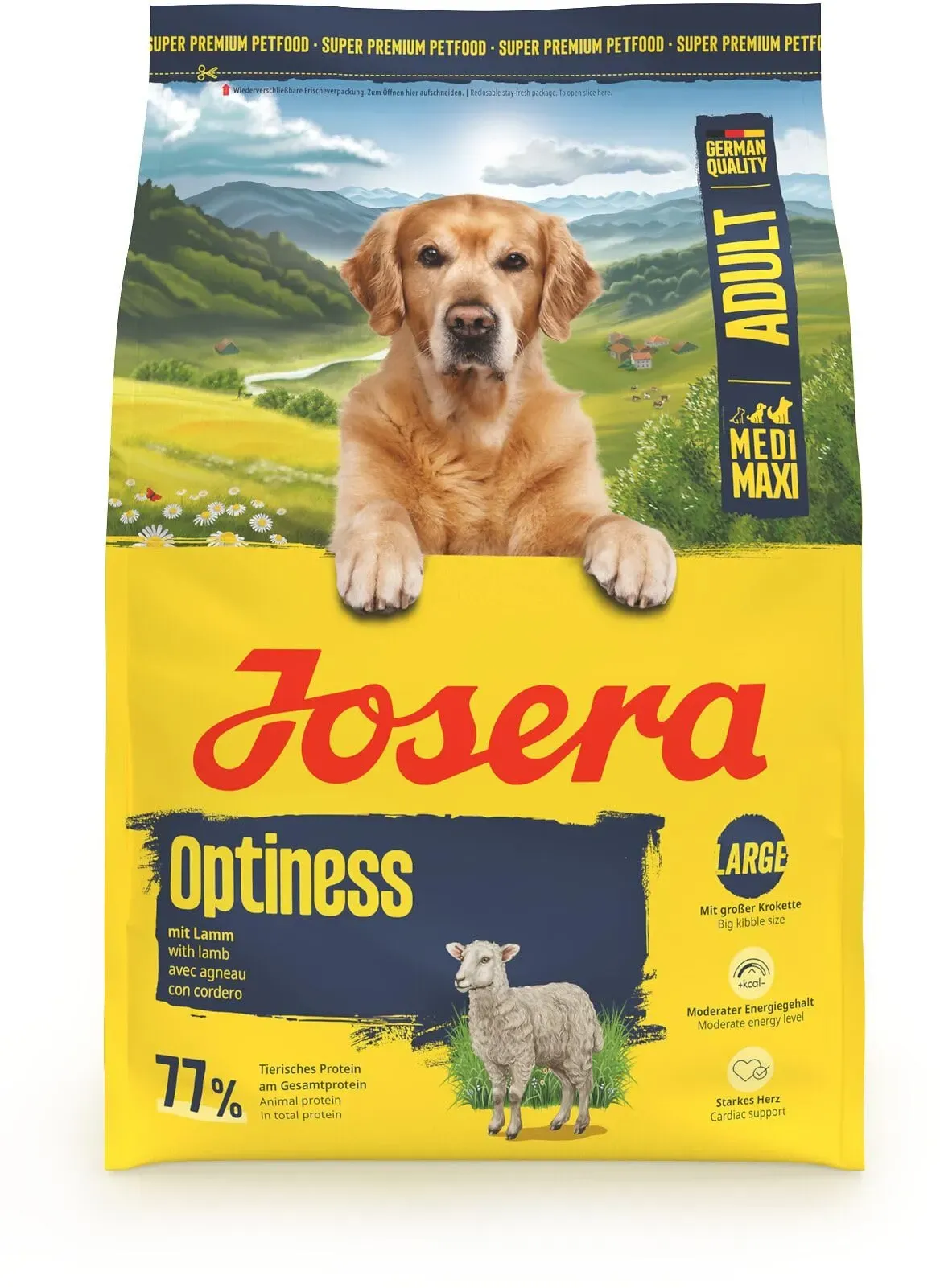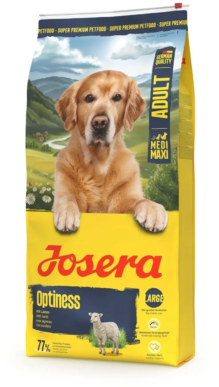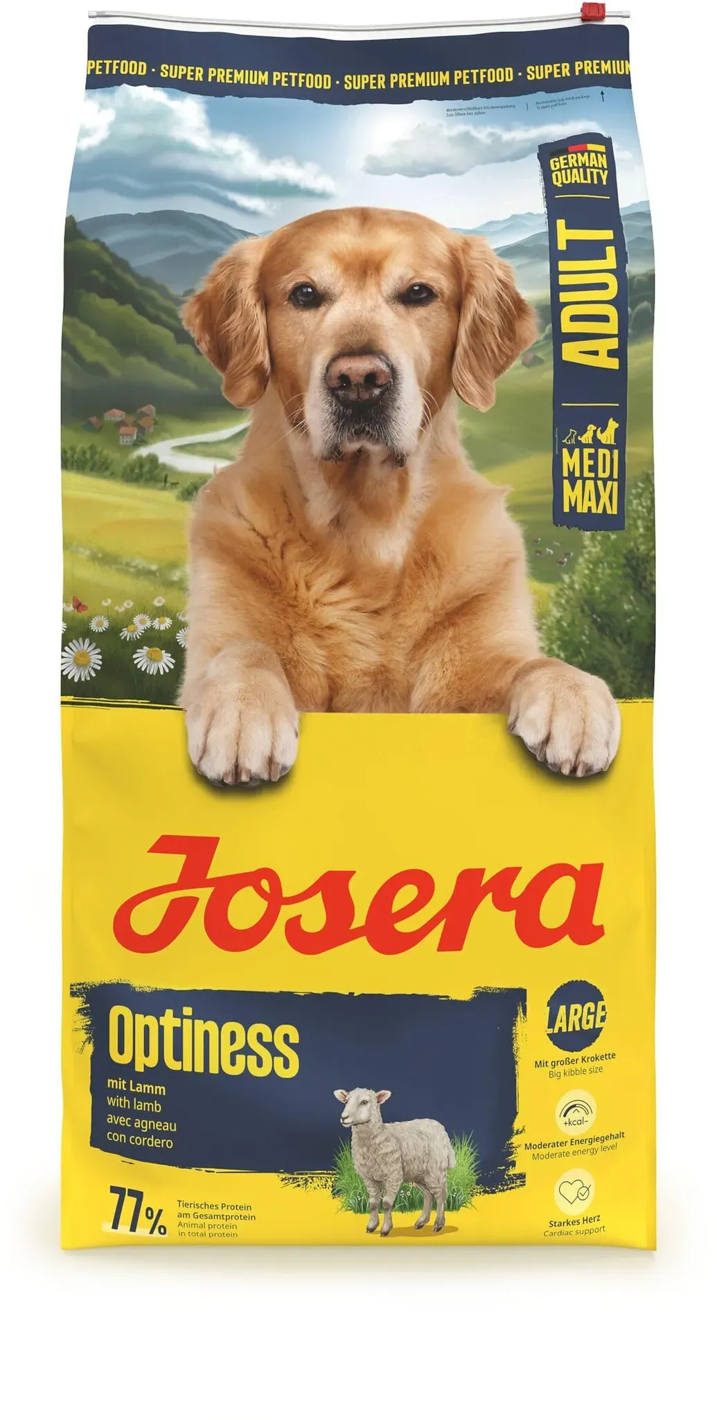 Verfügbarkeit: 1-2 Tage - 2,72€ /1 kg - Kategorie: Hundefutter - Josera - GTIN:4032254786429 - Josera Adult Optiness 12,5kg - 33,99 Euro bei tierarzt24.de - gefunden von billiger.de Dieses Angebot ist ebenfalls für groÃ?e Rassen mit XL-Kroketten und bietet eine gute Alternative. ![]() ![]() JOSERA Adult Large Optiness Lamm & Reis (1 x 12,5 kg) | Premium Trockenfutter für ausgewachsene Hunde | eiweißreduziert | weizenfrei | wertvolle Fettsäuren | XL-Kroketten gegen Schlingen | 1er Pack