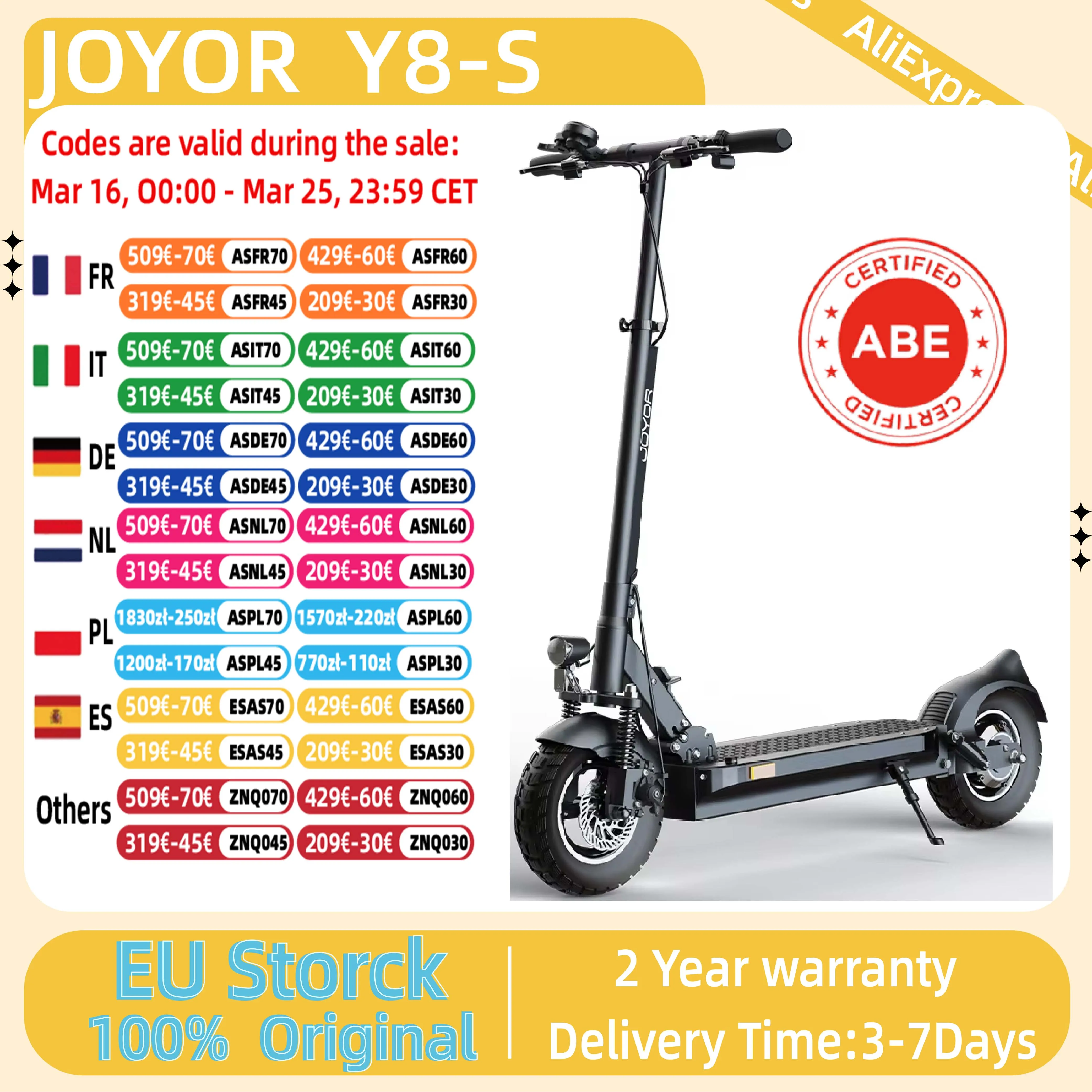 NONE - JOYOR Y8-S mit ABE-Zertifizierung Elektroroller für Erwachsene 500W Motor 48V 26AH Akku Vorder- und Hinterradfederung Scooter - bei de.aliexpress.com - aus Yadore Produktdaten Ein attraktives Angebot mit deutscher Straßenzulassung und guter Reichweite, ideal für Pendler. ![]() JOYOR Y8-S E-Scooter mit Deutscher Straßenzulassung, 48V 26Ah Akku, max. 20 km/h und 75 km Reichweite, 10 Zoll Faltbarer Elektroroller für Erwachsene