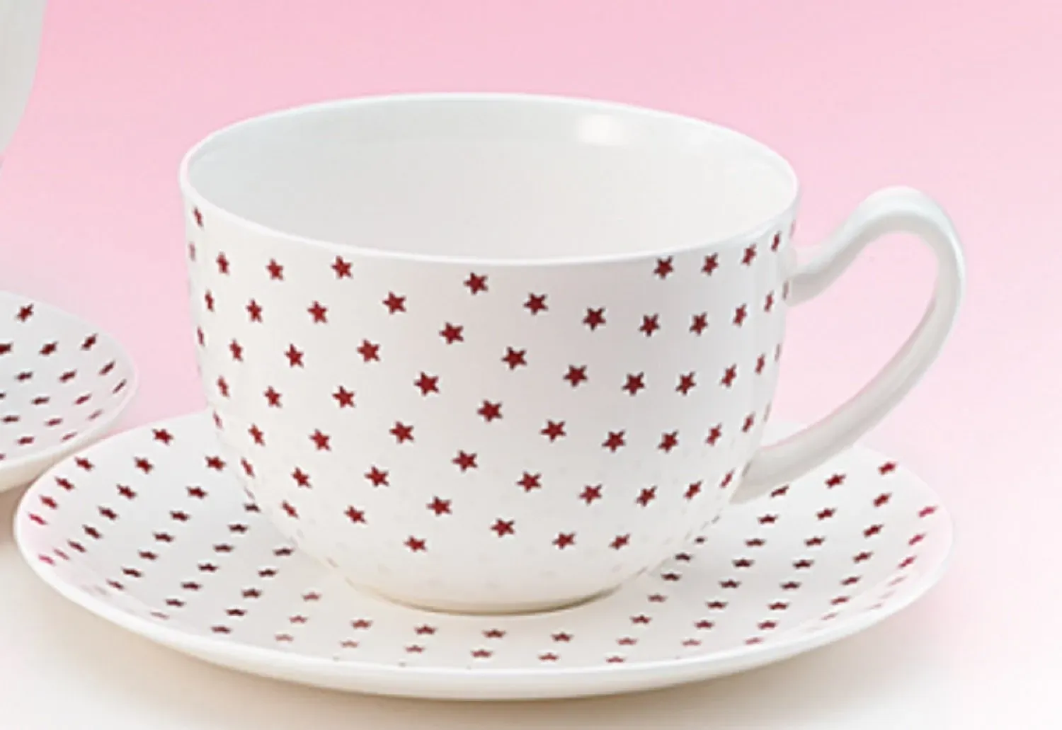 Verfügbarkeit: Gewöhnlich versandfertig in 4 bis 5 Tagen - Kategorie: Tassen & Becher - UNGARNIKAT - Großzügiges Fassungsvermögen von 500 ml €“ Ob als Kaffeebecher, Teetasse oder Müslischale: Diese handgemachte Frühstücktasse bietet viel Platz für dein Lieblingsgetränk oder ein leckeres Frühstück. Einzigartiges Landhaus-Design in Hellblau mit weißen Punkten €“ Die glänzende Glasur und die liebevolle Handbemalung machen jede Tasse zum Unikat und zum Blickfang auf jedem Tisch. Vielseitig einsetzbar €“ praktisch & dekorativ €“ Als getöpferter Tonbecher für Tee, als Keramik Frühstückstasse oder als stylischer Kaffeebecher 500ml in Vintage-Optik €“ immer ein stilvoller Begleiter. Spülmaschinenfest & mikrowellengeeignet €“ Die Tasse lässt sich mühelos reinigen Spülmaschinengeeingnet und ist bereit für heiße Getränke aus der Mikrowelle (wird heiß). Ideal für Zuhause, Büro oder als Geschenk. Robuste Handarbeit aus hochwertiger Keramik €“ Dicht gebrannt bei 990 °C, langlebig, dickwandig und ideal für den täglichen Gebrauch €“ perfekt als große Teetasse oder Milchkaffee-Tasse. - 22,00 Euro bei Amazon Marketplace Home - gefunden von billiger.de Die b + d Jumbotasse mit Unterteller im Sterne-Design aus feinem Porzellan bietet ein komplettes Set für den stilvollen Genuss. ![]() ![]() b + d Jumbotasse mit Unterteller Stars Sterne 500 ml feines Porzellan weiß weinrot