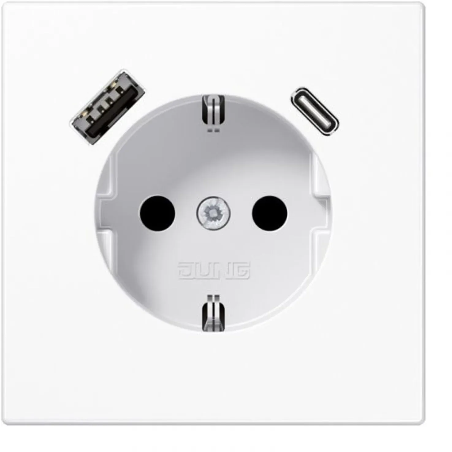 Die Lieferzeit beträgt 28-50 WerktageJung Steckdose 1-fach alpinweiß glänzend 1USB-A 1USB-C LS 1520-15 CA WW UP IP20