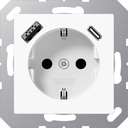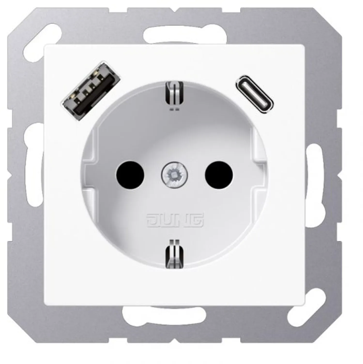 Die Lieferzeit beträgt 28-50 WerktageJung Steckdose 1-fach alpinweiß glänzend 1USB-A 1USB-C AS/A A 1520-15 CA WW UP mit BS IP20