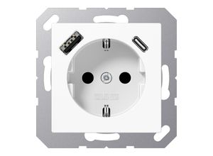 Heimwerken Wohnen Haus Garten - - Eigenschaften: mit integriertem erhöhten Berührungsschutz (SafetyPlus) mit 1 USB-Buchse TypA und 1 USB-Buchse TypC mit Federklemmen für starre und unbehandelte flexible Leiter bis 2,5mm2 Verbindungsklemmen nach DINVDE0620 Montage in Gerätedose nach EN60670-1 Tiefe der Gerätedose (Innenmaß): min.57mm Material: Thermoplast (A1520-15CAWW) - Versandkostenfrei: false - - - bei 342032 / Contorion - gefunden von shopping24 Diese Jung SCHUKO Steckdose mit USB Typ A in Alpinweiß ist eine Standardoption für die meisten Anwendungsfälle. ![]() ![]() Jung SCHUKO Steckdose mit USB Typ A A1520-18AWW