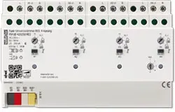 Kategorie: Schalter - Jung - GTIN:4011377087538 - Jung eNet Funk-LED-Universaldimmer REG, 1-kanaligREG-Gehäuse 2 TEBestimmungsgemäßer Gebrauch-Schalten und Dimmen von Glühlampen, HV-Halogenlampen, Tronic-Trafos mit Halogenlampen, dimmbaren induktiven Trafos mit Halogen- oder LED-Lampen, HV-LED- und Kompaktleuchtstofflampen-Betrieb mit Netzteil REG (Art.-Nr.: NT 1220 REG VDC) und Funkkopf REG (Art.-Nr.: FM FK 32 REG) oder eNet-Server-Bedienung mit geeigneten Funksendern-Einbau in Unterverteiler auf Hutschiene nach DIN EN 60715Produkteigenschaften-Einschalten durch lampenschonenden Softstart-Einschalthelligkeit dauerhaft speicherbar-Minimalhelligkeit dauerhaft speicherbar-Szenenbetrieb möglich-Statusanzeige mit LED-Statusrückmeldung an Funksender-Mit Taste Prog schaltbar-Elektronischer Kurzschlussschutz mit dauerhafter Abschaltung spätestens nach 7 Sekunden-Elektronischer übertemperaturschutz-Automatische oder manuelle Einstellung des zur Last passenden Dimmprinzips-Leistungserweiterung durch Leistungszusätze möglich. In Kombination mit Leistungszusätzen keine HV-LED- oder Kompaktleuchtstofflampen anschließen.Mit eNet-Server einstellbar:-Maximalhelligkeit-Dimmgeschwindigkeit-Ein-/ Ausschaltverzögerung-Auf-/ Abdimmrampe-Abschaltvorwarnung-Bediensperren-Dauer-Ein, Dauer-Aus-Hotelfunktion-Nachlaufzeit-LichtregelungZusatzfunktionen mit eNet-Server:-Update der Gerätesoftware-Fehlerspeicher auslesenTechnische DatenNennspannung: AC 230 V ~, 50/60 Hz Verlustleistung: max. 4 ... Der Jung Funk-LED-Universaldimmer REG, 4-kanalig, ist eine leistungsstarke Lösung für die Steuerung mehrerer Lichtkreise per Funk. ![]() ![]() Jung Funk-LED-Universaldimmer REG, 4-kanalig