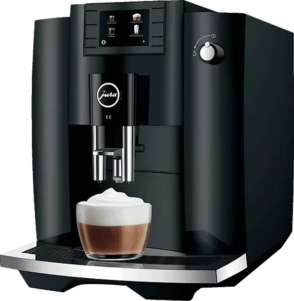 10 Händlerangebote bei billiger.de - Kategorie: Kaffeevollautomaten - Jura - JURA E6 Piano Black (EC) (15437) Cappuccino von Meisterhand: Gönnen Sie sich mit der E6 täglichen Kaffeehochgenuss. Neben klassischen Schwarzkaffee-Spezialitäten bereitet sie den Publikumsliebling Cappuccino dank der Easy-Cappuccino-Funktion in Perfektion zu. Der Professional Aroma Grinder sorgt mit gleichmäßigerem Mahlergebnis für noch aromatischeren Kaffee, und das durchdachte Bedienkonzept mit Farbdisplay und Tasten ermöglicht dank stringenter Benutzerführung die unkomplizierte Kaffeezubereitung auf Knopfdruck. In zeitlos elegantem Design wird die E6 zum Blickfang in jeder Küche. Die Innovationen der JURA E6 (EC): - Noch mehr Aroma für noch mehr Genuss mit dem Professional Aroma Grinder - Feinporiger Milchschaum für Cappuccino in Perfektion - Höchster Genuss höchst unkompliziert ein 2,8 -Tastendisplay machts möglich - Nachhaltiges Design und Premium-Verarbeitung **Die JURA E6 Piano Black (EC) 15437 unterscheidet sich zur JURA E6 Full Black (EC) 15802 in: - Drehknopf und Höhenverstellung Kaffeeauslauf mit Chromapplikationen Evtl. abgebildetes Zubehör wie Kaffee- und Espressotassen, Gläser, Milchbehälter, Tassenwärmer etc. sind Sonderzubehör und - sofern nicht ausdrücklich als enthaltenes Zubehör erwähnt - im Lieferumfang nicht eingeschlossen Angaben zum Hersteller (Informationspflichten zur GPSR Produktsicherheitsverordnung)JURA Elektrogeräte Vertriebs-GmbHPostfach 99 01 ... Mediamarkt .de Jura E6 (EC) Kaffeevollautomat Piano Black