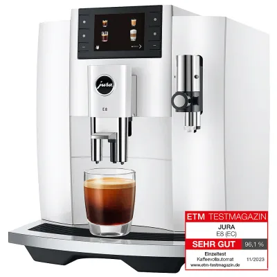 FazitDie Jura E8 ist ein ausgereifter, vielseitiger und langlebiger Kaffeevollautomat für anspruchsvolle Genießer. Sie bietet ein exzellentes Preis-Leistungs-Verhältnis innerhalb des Jura-Portfolios, ist aber im Premium-Segment angesiedelt. Achten Sie auf Ihre individuellen Bedürfnisse (Milchsystem, Platz, Design) und vergleichen Sie Preise und Angebote regelmäßig im Meta-Preisvergleich, um das beste Angebot zu finden. Jetzt live Suche nach jura e8 starten! Empfohlene Jura e8 Angebote*Durch Käufe über Links zu Händlern kann diese Website eine Provision erhalten, u.a. durch das eBay Partner Network und das AmazonPartnerNetHier ist eine Auswahl von 15 repräsentativen und empfehlenswerten Jura E8 Kaffeevollautomaten aus der Gesamtliste, die verschiedene Preisbereiche und Modelle abdecken: Dieses Angebot ist mit 889 Euro das günstigste Neugerät und bietet ein hervorragendes Preis-Leistungs-Verhältnis für die Jura E8 Piano Black (EC). ![]() ![]() Jura E8 Kaffeevollautomat 17 Kaffeespezialitäten auf Knopfdruck Piano Black (EC) 15584