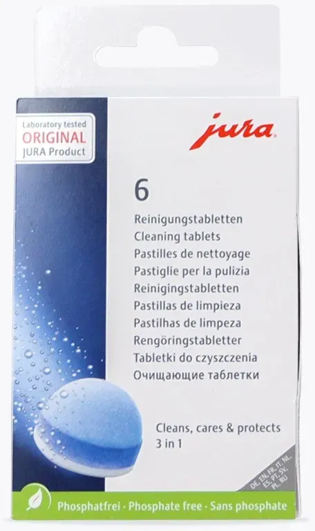 Auf Lager Versand durch AmazonJURA original - 3-Phasen-Reinigungstabletten für 6 Reinigungen - TÜV-zertifizierte Hygiene - 6 Stück - 24225