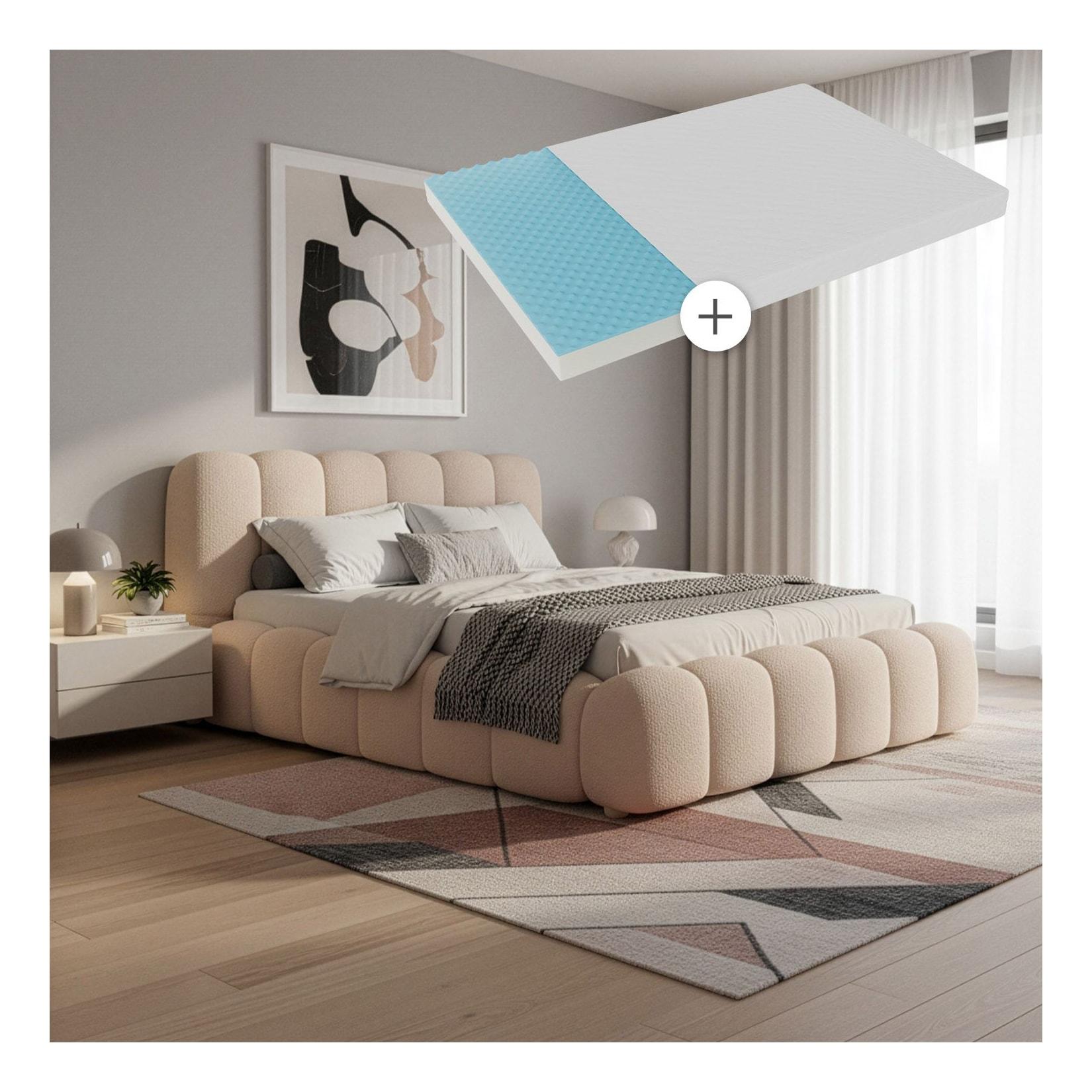 lieferbar-in 5-6 Werktagen bei dirJuskys Polsterbett Catania, Mit Matratze, gepolstertes Kopfteil, Bubble Design, Bouclé Stoff beige