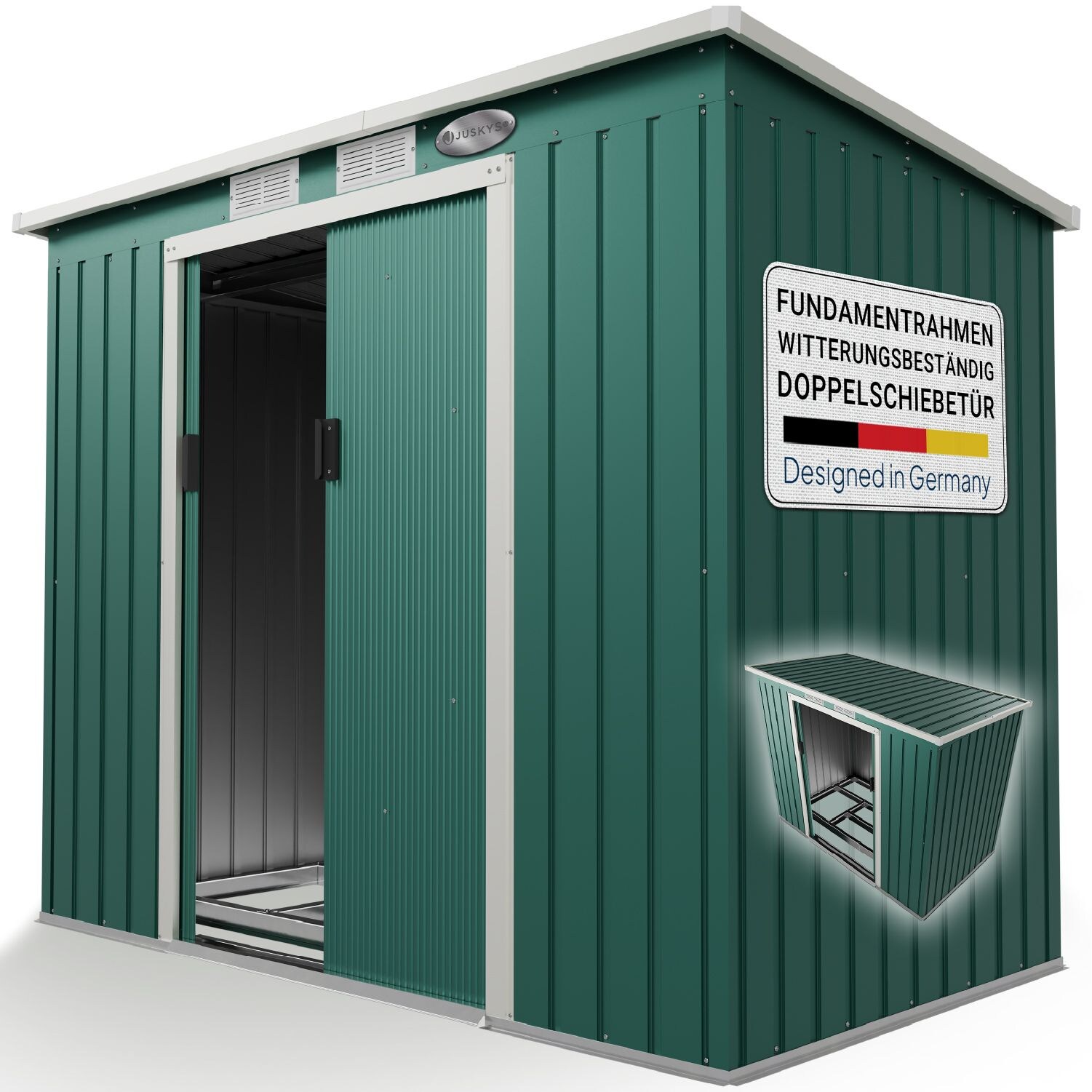 Kategorie: Gartenhäuser - Juskys - GTIN:4262437186504 - Gerätehaus Metall mit Schiebetür für Gartenmöbel & -geräte - 127,99 Euro bei Juskys - gefunden von billiger.de ![]() ![]() Juskys Geräteschuppen M 2,13 x 1,3 m dunkelgrün