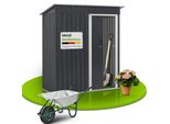 8 Händlerangebote bei billiger.de - Kategorie: Gartenhäuser - Juskys - Mit dem modern gehaltenen Metall Gerätehaus S mit Pultdach in Grau sorgen Sie stilvoll für Ordnung im Garten oder auf der Terrasse. Verstauen Sie hier ganzjährig Werkzeuge, Gartengeräte oder Spielzeug sauber und trocken. Das kompakte Metallgerätehaus in 16 - GTIN:4260565526117 ![]() ![]() Juskys Metall Geräteschuppen S Dunkelgrau
