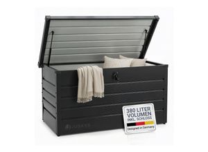 Zustand: Neu - Auflagenboxen - Juskys Juskys Gruppe GmbH - 200208 - EAN: 4260565529101 - œ Viel Platz: Das Volumen der großen Gartenbox beträgt 380 Liter; ordentliche Aufbewahrung im Außenbereich; für Sitzauflagen, Spielzeug, Werkzeuge; auch ideal für größere Gegenstände œ Verzinktes Metall: Die Aufbewahrungsbox besteht aus verzinktem und lackiertem Metall; Box ist wasserdicht, rostfrei und bedenkenlos draußen zu verwenden œ Abschließbare Metallbox: Die Kiste ist mit einem Schlüssel abschließbar; damit liegen Ihrer Gegenstände geschützt; ein fremder Zugriff wird somit erschwert œ Angenehme Bedienung: Der Deckel verfügt über eine Hubautomatik mit Gasdruckfeder; das erleichtert Ihnen das Öffnen und Schließen der Metall Kissenbox œ Zeitloses Design: Die moderne Gartenbox passt perfekt in den Garten, auf die Terrasse oder den Balkon; dank Montagematerial und Anleitung einfach zu montieren - Verkäufer: Juskys im amazon.de Marketplace ![]() ![]() Juskys Metall Aufbewahrungsbox Limani 380 Liter - Outdoor Box - wasserdicht, abschließbar - Gartenbox, Auflagenbox, Kissenbox für Garten Anthrazit