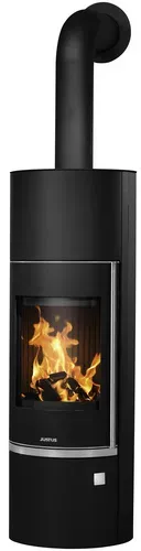 EEK: A+ - Kategorie: Kamine & öfen - Justus - GTIN:4250340909884 - Der Kaminofen Faro 2.0 von Justus besteht aus einem stählernen, schwarzen Korpus mit einer Abdeckplatte aus Glas. Die profilierte Feuerraumauskleidung verleiht dem Kaminofen nicht nur eine schöne Optik, sie sorgt außerdem für die Verwirbelung der Brenngase um eine saubere Verbrennung sicherzustellen. Der Brennraum ist für Holzscheite bis zu 33 cm Länge ausgelegt. Insgesamt kann der Kamin mit seiner Nennwärmeleistung von 6 kW Räume bis zu 124 m3 beheizen. Zudem ist der Kamin für einen 24 h-Dauerbetrieb ausgelegt. Durch Luftzirkulation im ergonomisch geformten Röhrengriff wird die Temperatur an der Oberfläche des Griffes weitgehend gesenkt. Weiteres kann der Kaminofen mit externer Verbrennungsluftversorgung betrieben werden. # Mit Scheibenspülung effektiv gegen Verschmutzungen Mit der Scheibenspülung bleibt die Scheibe des Kaminofens einwandfrei sauber. Die Spülung gleitet an der Scheibe entlang und legt dabei einen Schutzfilm über das Glas. Dieser Film hält Schmutzpartikel und Ruß davon ab, sich an der Scheibe festzusetzen. Dadurch werden faszinierende Feuererlebnisse und eine klare Sicht rt. # Selbstverriegelnde Verschlussmechanik Außerdem verfügt der Kaminofen über eine selbstverriegelnde Verschlussmechanik, wodurch beim Schließen der Tür ein Verschlussriegel durch Federkraft zuschnappt und die Tür sicher verschlossen hält. # Integriertes Holzfach Unterhalb des Feuerraums befindet sich ein offenes ... Der Faro Top 2.0 ist ideal für alle, die eine höhere Wärmeleistung und ein elegantes Design suchen. ![]() ![]() Justus Kaminofen Faro Top 2.0 (6 kW, Raumheizvermögen: 115 m3, Abdeckung: Stahl, Schwarz)
