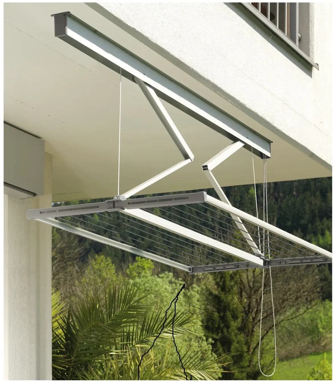 Verfügbarkeit: Auf Lager - Kategorie: Wäscheständer - Juwel - GTIN:0900156730045 - Mit Absenkautomatik: Der Wäschetrockner lässt durch die praktische Zugleine mit dem innovativen Getriebe stufenlos absenken und bleibt selbstständig in jeder Höhe fixiert Große Trockenfläche: Je nach Bedarf haben Sie wahlweise ca. 9 oder ca. 18 Meter Trockenlänge, was ca. zwei Waschmaschinenladungen entspricht. Für große Wäschestücke: Durch die Deckenmontage ist der Wäschetrockner ideal für große Wäsche wie beispielsweise Bettwäsche usw. geeignet Einfache Montage: Der Trockner kann im Badezimmer, Wäscheraum oder an windgeschützten Balkonen montiert werden. Nach Verwendung verschwindet er platz- und zeitsparend, fast unsichtbar in seinem Deckenprofil. Immer saubere Leinen: Die Wäscheleinen werden im zusammengeklappten Zustand von Rahmenprofil umschlossen und bleiben somit immer sauber. - 226,98 Euro bei Amazon Marketplace Home - gefunden von billiger.de ![]() ![]() Juwel Wäschetrockner - Samba 200, eBay hängender Wäscheständer, absenkbar bis 120 c