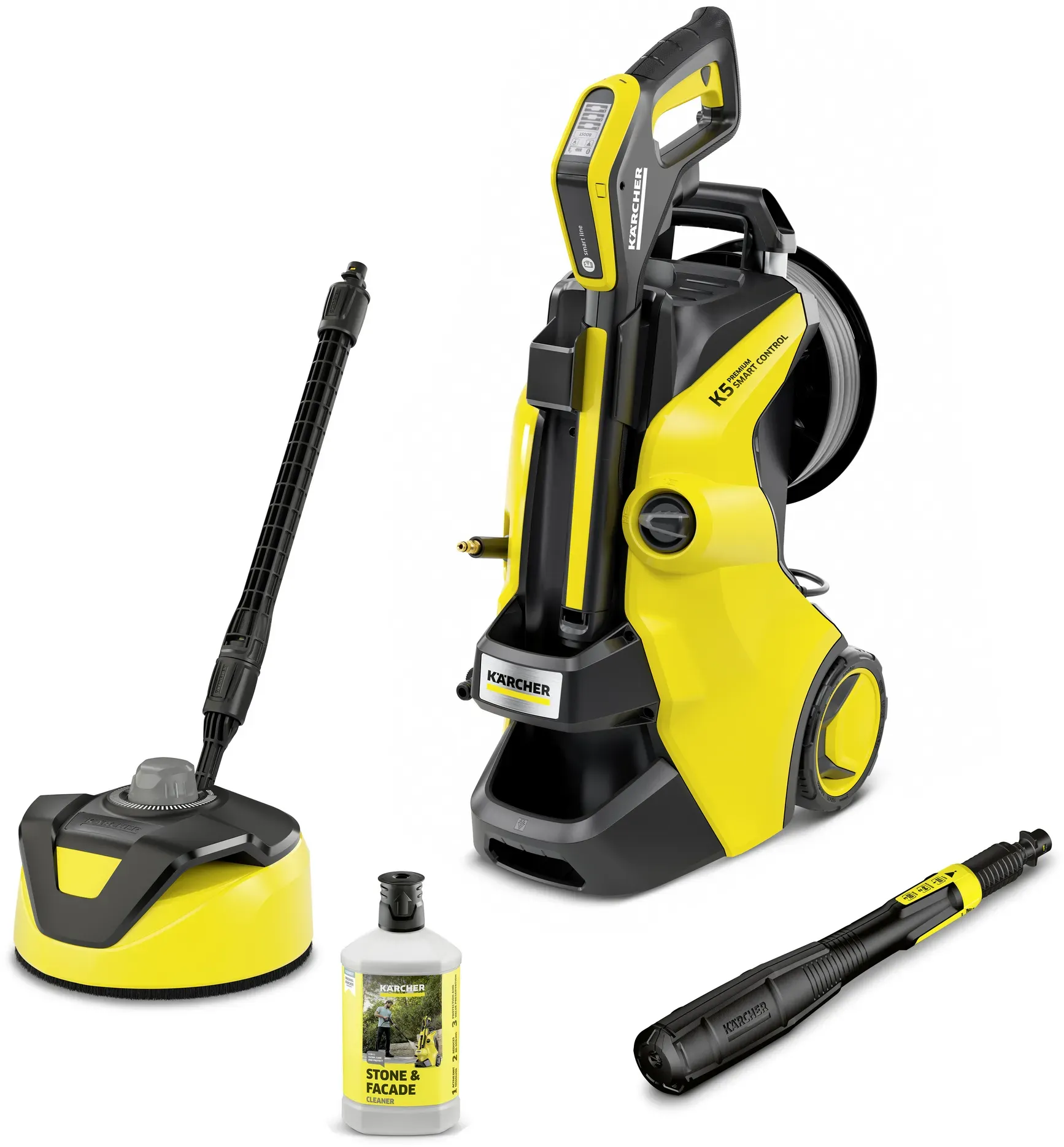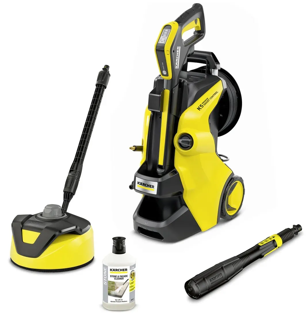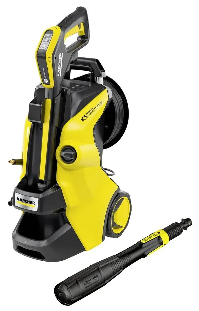 Karcher - EAN: 4054278786537 - Kärcher K5 Premium Smart Control Home Kit - Kaltwasser-Hochdruckreiniger -145 bar max - 500 lt/min- Bluetooth und Home & Garden App. Pistole Full Control mit LCD-Anzeige - Aluminiumpumpe - Fördermenge 500 l/h - Plug 'n' Clean System - mit integrierter Schlauchtrommel - Wasseranschluss- Kit als Gratis- Zubehör - bei agrieuro.de - aus Yadore Produktdaten Dieses Angebot für 483.14 Euro bietet den K 5 PREMIUM SMART CONTROL HOME Hochdruckreiniger mit Senkrecht-Design und hoher Förderleistung. ![]() Kärcher K 5 PREMIUM SMART CONTROL HOME Hochdruckreiniger Senkrecht Elektro 500 l/h Schwarz, Gelb