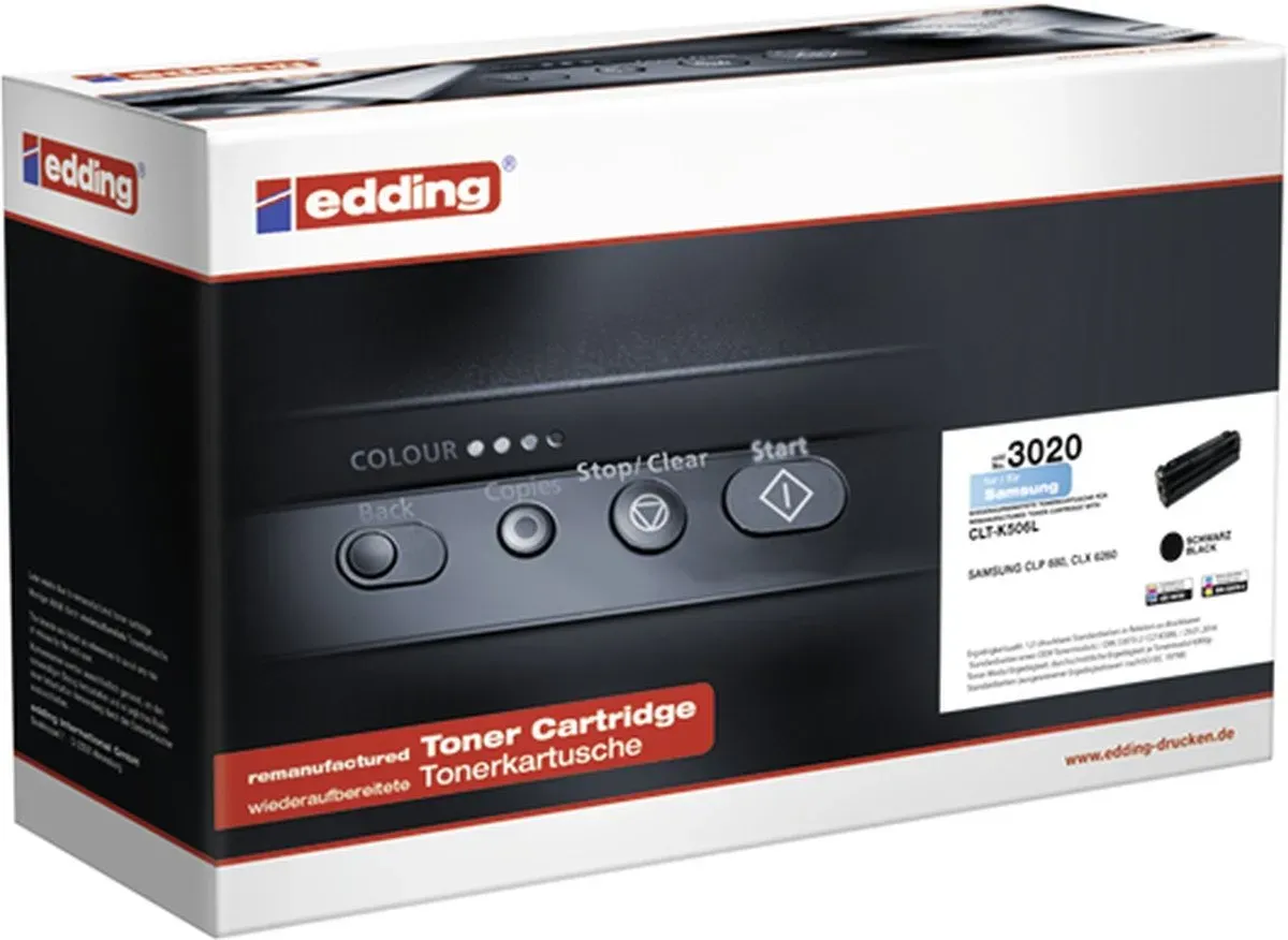 2 Händlerangebote bei billiger.de - Kategorie: Toner - edding - EDD-3020 Toner, schwarz kompatibel zu Samsung CLT-K506L Edding EDD-3020, 6000 Seiten, Schwarz, 1 Stück(e) Edding EDD-3020. Schwarztoner Seitenleistung: 6000 Seiten, Druckfarben: Schwarz, Menge pro Packung: 1 Stück(e) - GTIN:4004764983940 Ein Original Samsung Toner, der eine hohe Seitenleistung und die gewohnte Qualität des Herstellers bietet. ![]() ![]() Samsung HP Original CLT-K506L Toner schwarz 6.000 Seiten (CLT-K506L/ELS) für CLP-680DW/ND, CLX-6260FD/FR/FW/ND