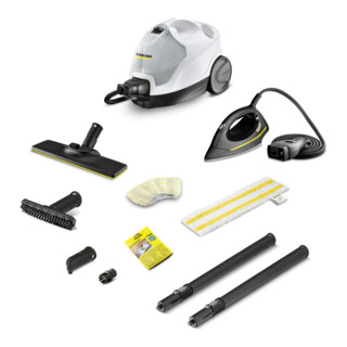 Kärcher - EAN: 4054278991535 - . Gründliche Reinigung von Hartböden, Polstern, Fenstern, Fugen & anderen Oberflächen . 4,2 bar Dampfdruck & 2250 W Leistung entfernen mühelos Verschmutzungen . Beseitigt 99,99% der Bakterien ohne den Einsatz von Chemie . 4-stufige Dampfregulierung am Gerät . VapoHydro-Funktion - Zuschaltung von heißem Wasser zusätzlich zum Dampf . 1,5 Liter abnehmbarer und permanent wiederbefüllbarer Wassertank & 500 ml separater Tank im Gerät . Je Tankfüllung kann eine Fläche von bis zu 150 m ohne Unterbrechung gereinigt werden . Gerät ist nach ca. 3 Minuten Aufheizzeit einsatzbereit . 6 m langes Kabel und 2,3 m langer Schlauch für einen großen Aktionsradius . Kindersicherung an der Dampfpistole schützt vor Verbrühungen . Integriertes Kabelfach und Aufbewahrungsfach für Zubehör . Maße: (BxHxT) 43,9 x 30,5 x 30,1 cm / Gewicht 6 kg Merkmale: geeignet für: Hartboden, Polster, Fenster Dampfdruck: 4,2 bar Leistung: 2250 Watt weitere Produktinformationen: Lieferung: inkl. Bodendüse EasyFix, Handdüse, Punktstrahldüse, Rundbürste (klein), 2-Tank-System, 2x Verlängerungsrohr 0,5m, überzug für Handdüse, Universal-Bodentuch mit Klett für Bodendüse EasyFix, Dampfschlauch mit Pistole 2,3 m, integrierter Einfülltrichter, 3x Entkalkerpulver - bei bueromarkt-ag.de - aus Yadore Produktdaten ![]() KÄRCHER Dampfreiniger 'SC 4 EASYFIX IRON', schwarz-weiß (weiß, schwarz), B:25,1cm H:27,3cm T:38cm, Mehrzwecksauger, mit Bodendüse EasyFix und Dampfdruck-Bügeleisen