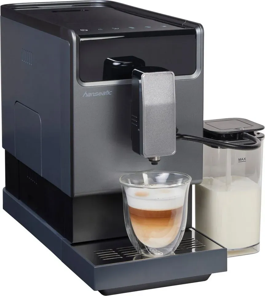 lieferbar-am nächsten Werktag bei dirHanseatic Kaffeevollautomat HACM121470ST, magnetisch, abnehmbare Tassenabstellfläche, zwei separate Milchtanks schwarz|silberfarben