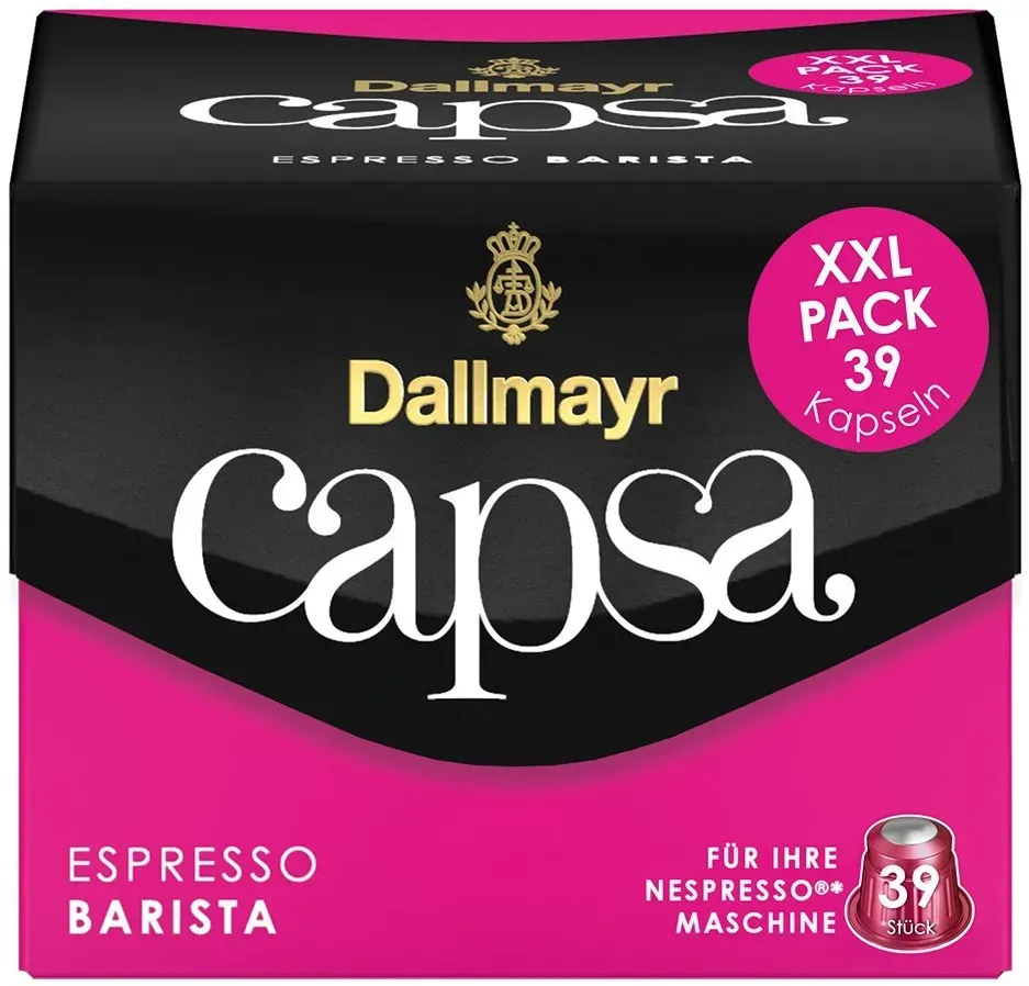 9 Händlerangebote bei billiger.de - Kategorie: Kaffee & Espresso - Dallmayr - Entdecke die capsa Vielfalt 10 Kapseln in einer smarten Box Wir bieten ab sofort die capsa Aromakapseln in einer veränderten Verpackung an. Die bisher bunten Folien ersetzen wir vorübergehend durch eine einheitliche, silberfarbene Folie. Wir arbeiten daran, die Kapseln bald wieder gut unterscheidbar zu gestalten. Das Wichtigste aber: Das Aroma des Kaffees bleibt durch die capsa Hülle perfekt geschützt, ohne zusätzliche Umverpackung. Dallmayr Espresso Barista XXL, Kaffeekapsel, Kaffee, Nespresso, 39 Stück(e) Dallmayr Espresso Barista XXL. Produkttyp: Kaffeekapsel, Getränkearten: Kaffee, Kaffeekapsel-/Podsystem: Nespresso. Menge pro Packung: 39 Stück(e) Espresso Barista XXL - GTIN:4008167310198 Kimbo Capri Kapseln sind eine beliebte Wahl für Nespresso-Original-Maschinen und bieten eine mittlere Röstung mit italienischem Flair. ![]() ![]() Kimbo Capri 50 Kapseln, Kompatibel mit Nespresso Original, mittlere Röstung, Kaffekapseln
