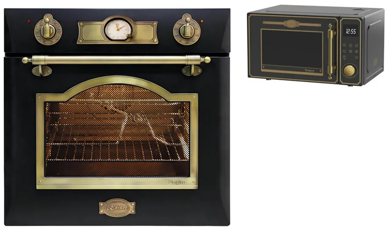 Zustand: Neu - Herdsets - Kaiser - EH 6355 Em Sil+KCG 6383 EH 6355 Em Sil + KCG 6380 - EAN: 4032495435483 - Ausführung: Emaille in Anthrazit kombiniert mit massivem Metalldekor in Silber für ein modernes und edles Erscheinungsbild. Hochwertige Verarbeitung: Bediendrehknöpfe, Türgriffe und Zierleisten aus massivem Metall sorgen für Stabilität und Langlebigkeit. Ergonomisches Design: Einfache Bedienung dank ergonomischer Drehknebel und einem Türgriff aus hochwertigem Silbermetall. Innovatives Teleskopsystem: Für ein sicheres und sanftes Herausziehen von Backblechen - belastbar bis 15 kg. Großzügiges Volumen: 67 Liter Garraum für große und kleine Gerichte. Energieeffizienzklasse A: Umweltfreundlich und sparsam im Energieverbrauch. - Verkäufer: elektroniks-home Preise inkl. MwSt. im amazon.de Marketplace Für 1130 Euro bietet OTTO ein Backofen-Set mit Mikrowellenherd, HeiÃ?luft und Grill, was vielseitige Kochmöglichkeiten ermöglicht. ![]() ![]() Kaiser Küchengeräte Kaiser Küchengeräte Backofen-Set Einbaubackofen Kaiser Empire EH 6355 Backofen 60 cm Autark, Elektro Einbaubackofen, Teleskop-System, 67L, 8 Funktionen mit Mikrowellenherd mit Heißluft, Grill, 25 L, TouchControl EH 6355 Em+M 2530 Em, mit 1-fach-Teleskopauszug schwarz