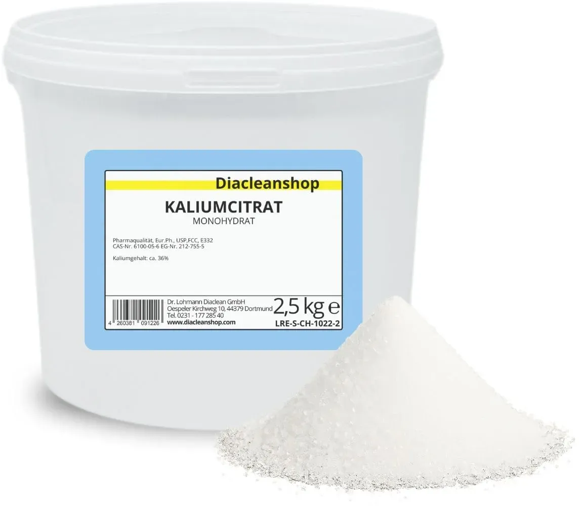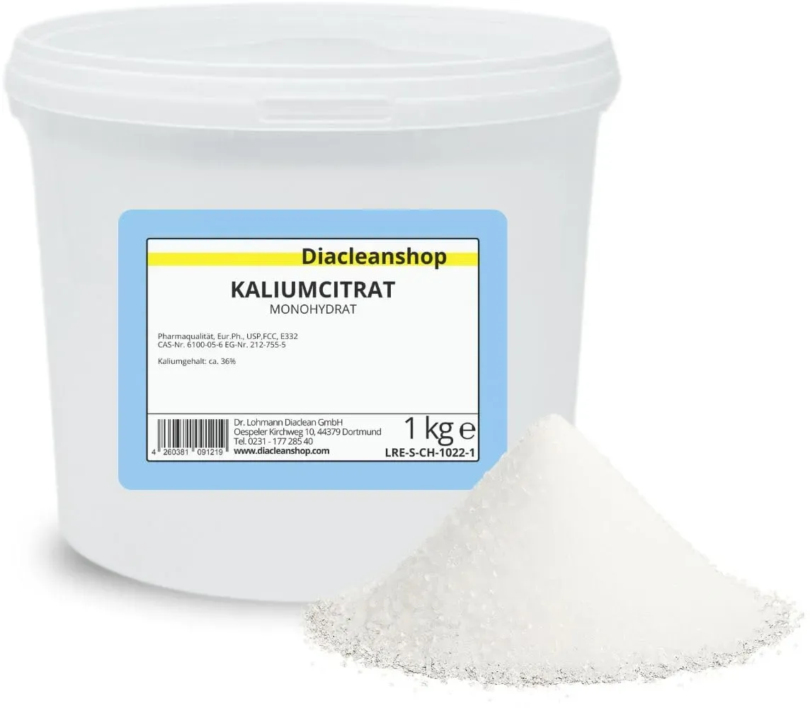 Dieses Angebot ist ein Beispiel für Angebote, die kürzlich auf dem eBay-Marktplatz in der Kategorie 180959 verfügbar waren. Bitte aktualisieren Sie die Suchergebnisse um aktuelle Angebote zu erhalten. Diacleanshop Kaliumcitrat Monohydrat in 1kg-Packung bietet eine größere Menge in Pharmaqualität für den regelmäßigen Gebrauch. ![]() ![]() Diacleanshop Kaliumcitrat Monohydrat 1kg - Kaliumgehalt 36% - Pharmaqualität mind. 99% - Pulver - E332