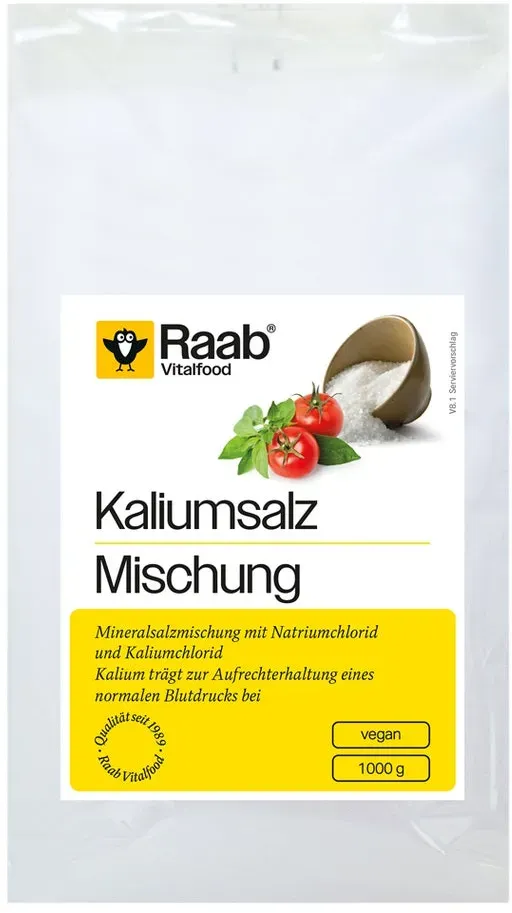 Zustand: Neu - 10,85 € / kg - node 1 - Raab Vitalfood - 9724 - EAN: 4019839897244 - œ” KALIUMSALZ-MISCHUNG: Raab Kaliumsalz-Mischung ist eine Mineralsalzmischung, die nur 66,7 % Natriumchlorid (Kochsalz) und zusätzlich Kaliumchlorid enthält. œ” ANWENDUNG: Verwenden Sie die Raab Mineralsalzmischung als Alternative für gewöhnliches Kochsalz in allen Speisen und Gerichten. œ” PRODUKTION IN DEUTSCHLAND: im IFS-zertifizierten Betrieb (steht für höchste Qualitäts- und Lebensmittelsicherheitsstandards). Wo immer möglich wird auf Farb-, Geschmacks-, und Konservierungsstoffe sowie auf Aromen und Stabilisatoren verzichtet. œ” Raab Vitalfood - Natürlich. Pflanzlich. Gut. Die bekannte Handelsmarke aus dem Reformhaus und Bioläden in Deutschland und Europa vertraut seit über 3 n auf die Kraft der Natur. - 4 Händler im amazon.de Marketplace Dieses Raab Vitalfood Kaliumsalz in der 1000g Packung ist eine kostengünstige Option für regelmäßige Nutzer. ![]() ![]() Raab Vitalfood GmbH Raab Vitalfood Kaliumsalz Mischung 1000 g