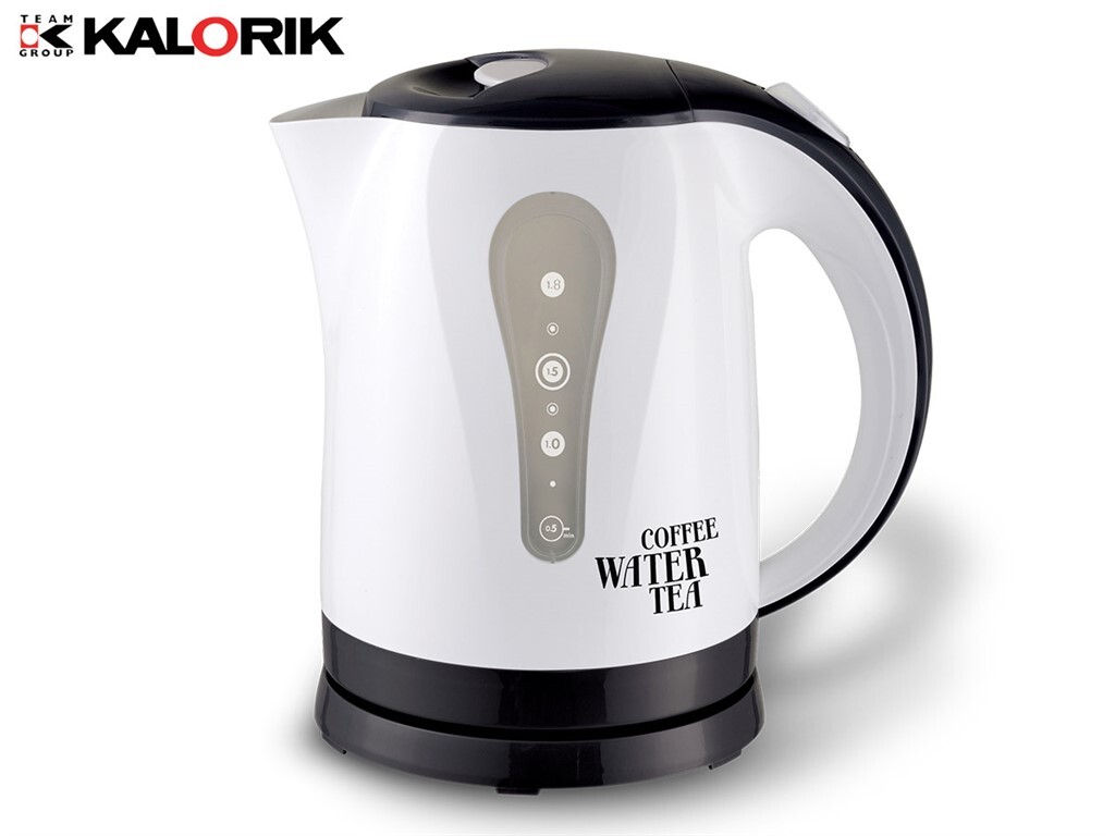 2 Händlerangebote bei billiger.de - Kategorie: Wasserkocher - Elba - Kalorik kabelloser Wasserkocher 'TKG JK 1010 CW' aus hochwertigem, hitzebeständigem Kunststoff. Kabellos durch 360 Mittelkontak-Basisstation - der Wasserkocher lässt sich aus jeder Position aufsetzen bzw. abnehmen und ist daher gleichermaßen für Rechts- sowie Linkshänder geeignet. Deckelöffnung per Knopfdruck. 1,7 Liter Fassungsvermögen. Transparente Wasserstandsanzeige für immer sichtbaren Füllstand. Durch den Partikelfilter werden evtl. Kalkpartikel zuverlässig zurückgehalten. Mit verdecktem Edelstahl-Heizelement für eine leichte Reinigung und Entkalkung. Die nötige Sicherheit gewährleistet der Trockengeh- und überhitzungsschutz sowie die automatische Abschaltung. Rutschhemmende Füße sorgen für einen guten Stand. Betriebskontrollleuchte. Kraftvolle 2000 Watt. Maße HxBxT ca.: 22 x 20 x T 17 cm. - GTIN:5413346351302 ![]() kaufland.d e Kalorik TKG JK 1044W/1010CW Schnurloser Wasserkocher, Kunststoffgehäuse, 1,7 l F 1/4llmenge, 2000 Watt, 360 Sockel, Trockengehschutz, Kalkfilter