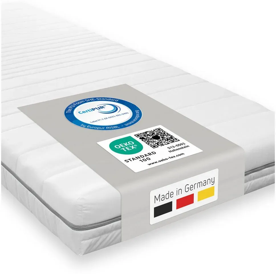Kategorie: Kaltschaummatratzen - TULENA - GTIN:5905745279313 - TULENA NOX Schaumstoffmatratze 200 x 190 cm Comfort Plus (20 cm)Bequeme beidseitig verwendbare Schaumstoffmatratze ideal für Kinder- und Gästebetten.Hauptmerkmale: - Maße: 200 x 190 cm - Höhe: 20 cm - Material: Komfortschaum - Härte: weich (H2) / mittelweich (H3) - Bezug: abnehmbar, antibakteriell, mit 3-seitigem Reißverschluss, waschbar bei 40 C - Umweltgerechte Verpackung: Die Matratze ist rollenverpackt und benötigt nach dem Auspacken 72 Stunden, um ihr volles Volumen zu erreichen. Bitte nicht länger als vier Wochen komprimiert lagern. - Hinweis: Die Farben können von der Abbildung abweichenPflegehinweise: - Bezug bei 40 C waschbar gemäß Pflegeetikett - Regelmäßig wenden und lüftenLieferumfang: 1 x Schaumstoffmatratze TULENA NOX 200 x 190 cm 1 x Abnehmbarer, antibakterieller Bezug mit 3-seitigem Reißverschluss, waschbar bei 40 Cüber die Marke TULENA: TULENA steht für Komfort und hochwertige Schlafqualität. Die Produkte verbinden modernes Design mit Bequemlichkeit, damit jeder Tag erholt beginnt. Mit TULENA investieren Sie in langanhaltenden Komfort und Langlebigkeit überzeugen Sie sich selbst! - 379,80 Euro bei Kaufland.de - gefunden von billiger.de Diese Premium-Matratze von AM Qualitätsmatratzen bietet Viscoschaum und ist Made in Germany, was auf höchste Qualität und Anpassungsfähigkeit hindeutet. ![]() ![]() AM Qualitätsmatratzen Premium Plus 7 Zonen Kaltschaummatratze 90x200 H2 mit Viscoschaum - Made in Germany - Oeko TEX zertifizierte Visco Matratze Kaltschaum 90x200-19 cm Hoch