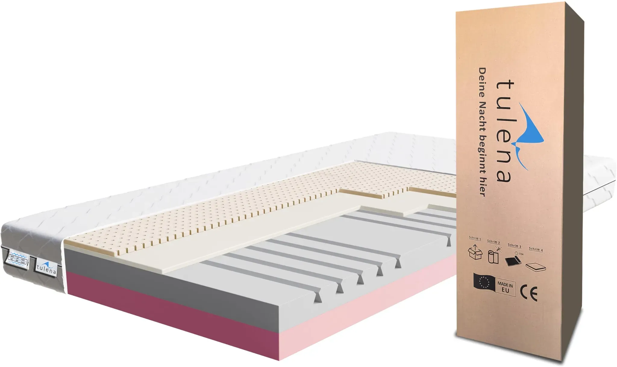 Kategorie: Kaltschaummatratzen - TULENA - GTIN:5903715574192 - Doppelseitiger Komfort: Genießen Sie mit TULENA NOX Matratze die Flexibilität von zwei Liegehärten wählen Sie zwischen weich oder fest, alles auf einer Federkernmatratze! Atmungsaktiver Microfaserbezug: Der abnehmbare Bezug ist bei 40 waschbar und bietet Allergikern Schutz vor Hausstaub und Milben. Mit einem dreiseitigen Reißverschluss ist das Aufziehen ein Kinderspiel. Bitte beachten Sie, dass der Bezug nicht für den Trockner geeignet ist. Risikofreies Testen: Probieren Sie 30 Nächte lang aus und erleben Sie erholsamen Schlaf. Nicht zufrieden? Kein Problem wir holen die Matratze ab und erstatten Ihnen Ihr Geld zurück, ohne versteckte Kosten. Bestellen Sie jetzt mit einem Klick auf 'In den Warenkorb legen'! Umweltgerechte Verpackung: Unsere volumenreduzierte Rollmatratze benötigt nach dem Auspacken 72 Stunden, um ihr volles Volumen zu erreichen. Bitte lassen Sie sie nicht länger als vier Wochen komprimiert. Gesund und zertifiziert: Die Wendematratze ist OEKO-TEX geprüft, schadstofffrei und bietet eine von n. Bitte beachten Sie: Die Farben können von der Abbildung abweichen. - 287,90 Euro bei Amazon Marketplace Home - gefunden von billiger.de Diese TULENA NOX Matratze in 160x200 cm bietet eine weiche H1+H2 Seite und eine mittlere H2+H3 Seite, perfekt für individuelle Schlafbedürfnisse. ![]() ![]() TULENA NOX Matratze 160x200 Komfortschaum weich H1 + H2 Comfort Plus 18 cm Probeschlafen inkl. Wendematratze Antibakterieller Bezug mit Reißverschluss