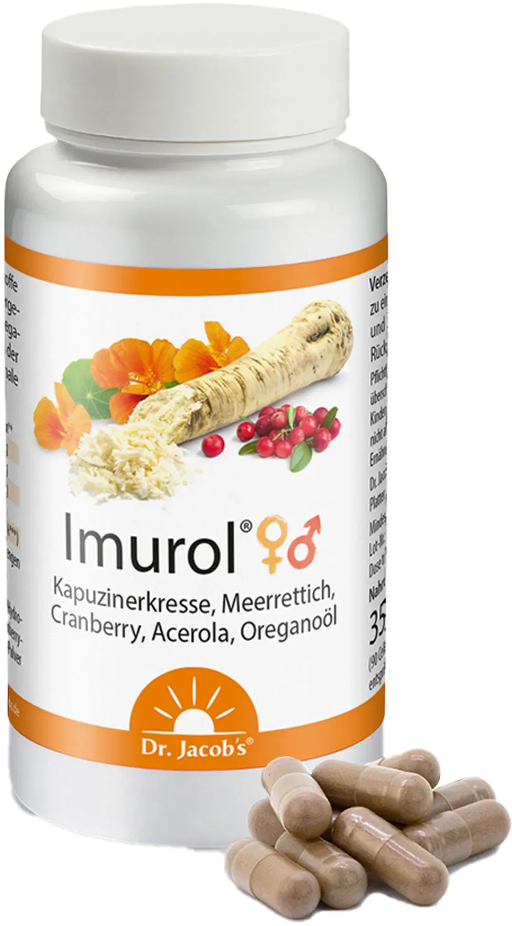 Kategorie: Nahrungsergänzungsmittel - The Nutri Store - GTIN:4260208238834 - Nahrungsergänzungsmittel mit natürlichem Vitamin C zur Unterstützung der körpereigenen Abwehrkräfte Jede Kapsel kombiniert 250 mg Kapuzinerkressen- Krautpulver mit 100 mg Meerrettich-Wurzelpulver sowie 55 mg Acerola-Extrakt Ohne künstliche Farbstoffe, Konservierungsstoffe, künstliche Aromen Lactosefrei, Sojafrei Nahrungsergänzungsmittel. Hergestellt in Deutschland. - 24,95 Euro bei Amazon Marketplace Health & Personal Care - gefunden von billiger.de Dieses Produkt von Dr. Jacobs kombiniert Kapuzinerkresse und Meerrettich mit Cranberry, was eine interessante zusätzliche Komponente darstellt. ![]() ![]() Dr. Jacob's Imurol Kapuzinerkresse Meerrettich Cranberry 90 St