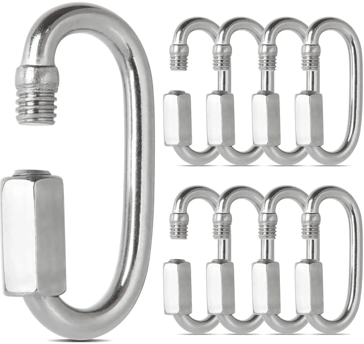Verfügbarkeit: Auf Lager - Kategorie: Sonstige Elektroinstallationsartikel - buxiugk - GTIN:0715444937552 - Diese D-Form Verriegelungsschnallen sind aus 304 Edelstahl, stark, langlebig, rostfrei und korrosionsbeständig. Jeder Karabiner misst ca. 40 x 22 mm.Die maximale Tragfähigkeit beträgt ca. 120 kg,M4-4mm / 0.16' ist für den Stiftdurchmesser.Lieferumfang:6 x M4-Schnellverbindungs-Karabiner. Drehen Sie im Uhrzeigersinn den Faden, um sich zu öffnen und gegen den Uhrzeigersinn zu schließen. Hochwertige Schnellglieder für Ketten- / Seil- und Kabelverbindungen; Gewindemutterverschluss für zusätzliche Sicherheit. Sie können es für Rucksack, Schlüsselring, Ketten, Seile, Camping, Wandern, Angeln, Haustier, Innen-Outdoor-Ausrüstung Ausrüstung, DIY Zubehör verwenden. - 7,99 Euro bei Amazon Marketplace Sports - gefunden von billiger.de Ein Set von 16 Edelstahl-Karabinern mit Schraubverschluss, die sich für eine Vielzahl von Outdoor- und Indoor-Anwendungen eignen. ![]() ![]() zvd SENENQU 16 Stück Karabiner zum Schrauben aus Edelstahl M5, Karabinerhaken mit Schrauben 304, D-Form, Karabinerhaken aus Edelstahl für Wandern, Camping, Outdoor und Innenbereich