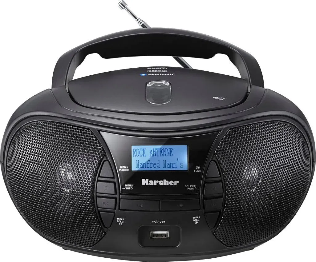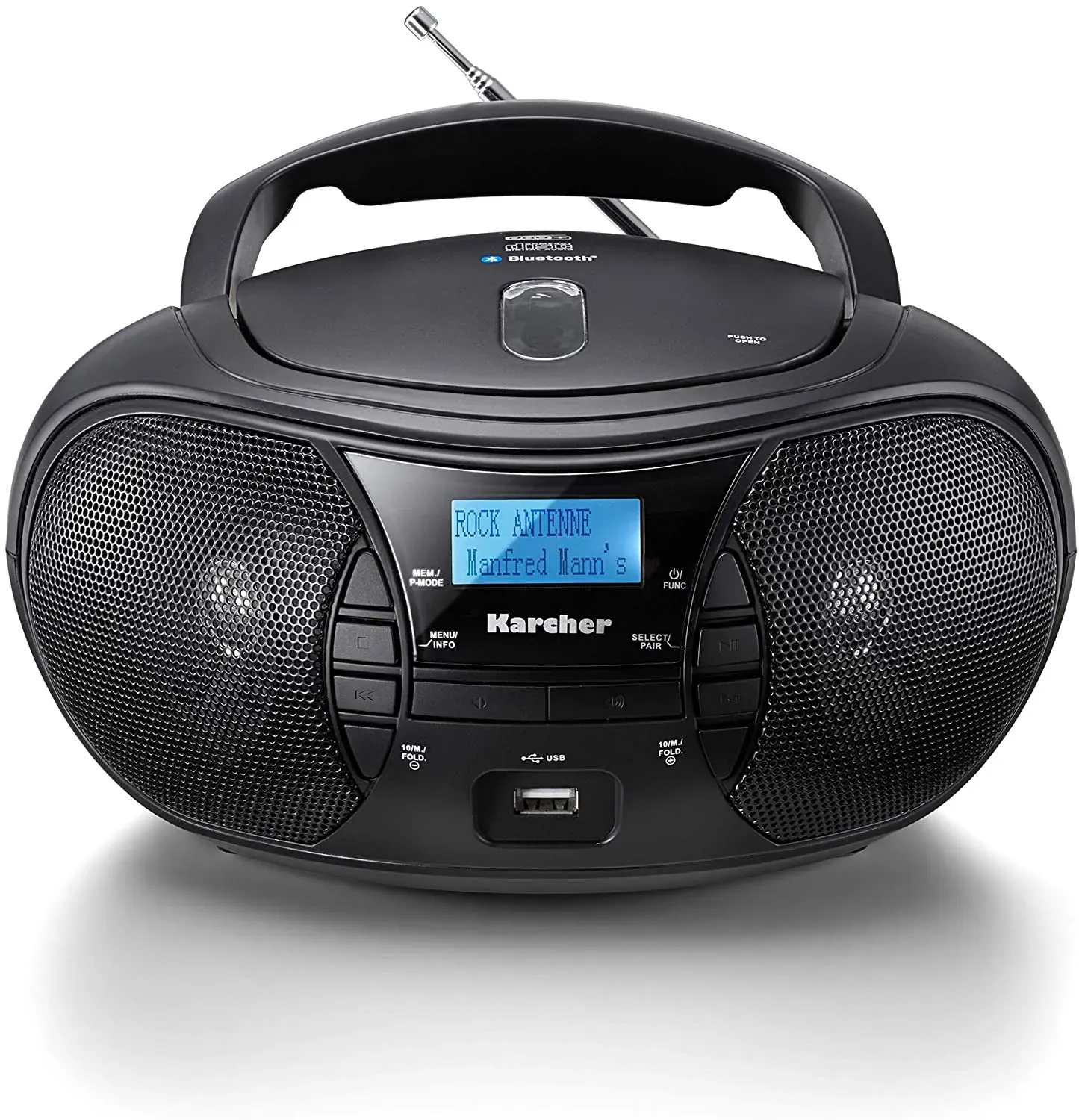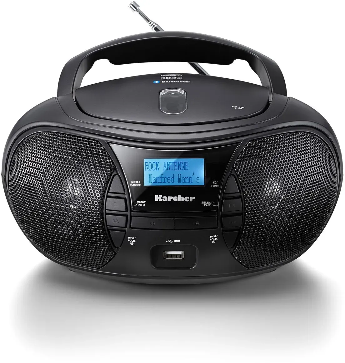 Auf Lager Versand durch AmazonKarcher RR 5028D tragbares CD Radio (CD-Player, DAB+ Radio, Bluetooth, Batterie/Netzbetrieb, USB) schwarz