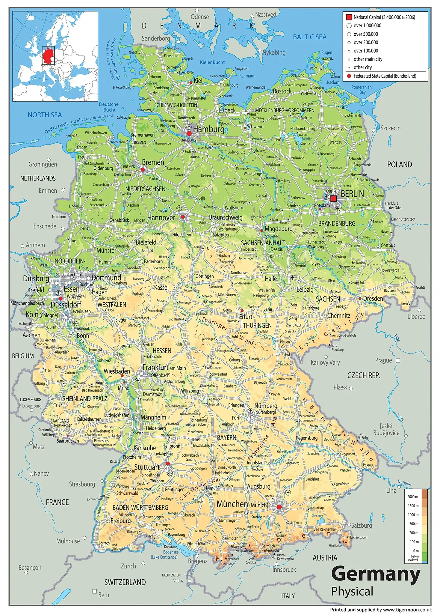 Verfügbarkeit: Auf Lager - Kategorie: Lehrmaterialien - Tiger Moon - GTIN:0616245780142 - Deutschland, die Bundesrepublik Deutschland, ist ein kulturelles und historisches Zentrum Westeuropas. Mit seinem künstlerischen Einfluss und seinem reichen literarischen Erbe ist dieses Land ein ikonischer und exklusiver Mitgliedsstaat der Europäischen Union. Es grenzt im Norden an die Ost- und Nordsee und im Süden an die majestätischen Alpen. Seine 16 Bundesstaaten haben eine Bevölkerung von über 84 Millionen und decken eine Gesamtfläche von 357.600 km2 (138.100 m2) ab. Es teilt Grenzen mit Dänemark, Polen, der Tschechischen Republik, österreich, der Schweiz, Frankreich, Luxemburg, Belgien und den Niederlanden, was zu seiner vielfältigen und luxuriösen Landschaft beiträgt. Unsere politische Karte von Deutschland ist lebendig und informativ, mit gut lesbarem Text und leuchtenden Farben. Einschließlich Hauptstädte, Flüsse, wichtige Straßen, Städte und umliegende Gewässer. Die politischen Aspekte wie staatliche und nationale Grenzen sowie Hauptstadt und Großstädte sind enthalten und sorgen für eine attraktive Karte entweder für Zuhause, Büro oder Schule, zur Präsentation an einer Wand oder für Schreibtischarbeiten. Größe A1 - 59,4 x 84,1 cm. Gedruckt auf hochwertigem Posterpapier und laminiert für eine lange Lebensdauer. - 18,78 Euro bei Amazon Marketplace Automotive - gefunden von billiger.de Die SAFE Scratch Rubbelkarte Deutschland ist eine interaktive Karte, auf der man bereiste Orte freirubbeln kann, perfekt als Erinnerung oder Wanderkarte. ![]() ![]()