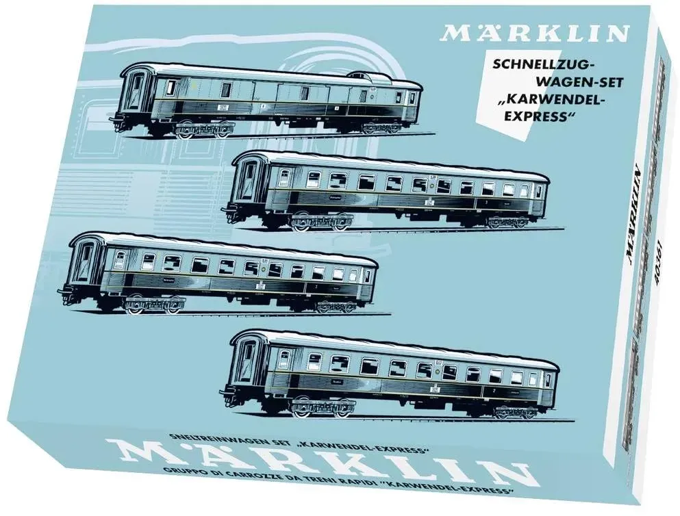 ? Was ist der Karwendel Express von Märklin?Das Set besteht typischerweise aus vier vierachsigen Schnellzugwagen unterschiedlicher Bauarten: